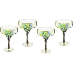 Mexican Design Hand Blown Margarita Glass-Set Of 4 Luxury Hand Blown Confetti Margarita Glasses (16 Oz)