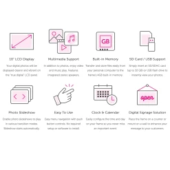 Present a message to your customers. Place the frame on any counter surface in your place of business where space is a premium. Use pictures in slideshow mode to display business hours, menu boards and showcase sale items and services. The possibilities are endless!