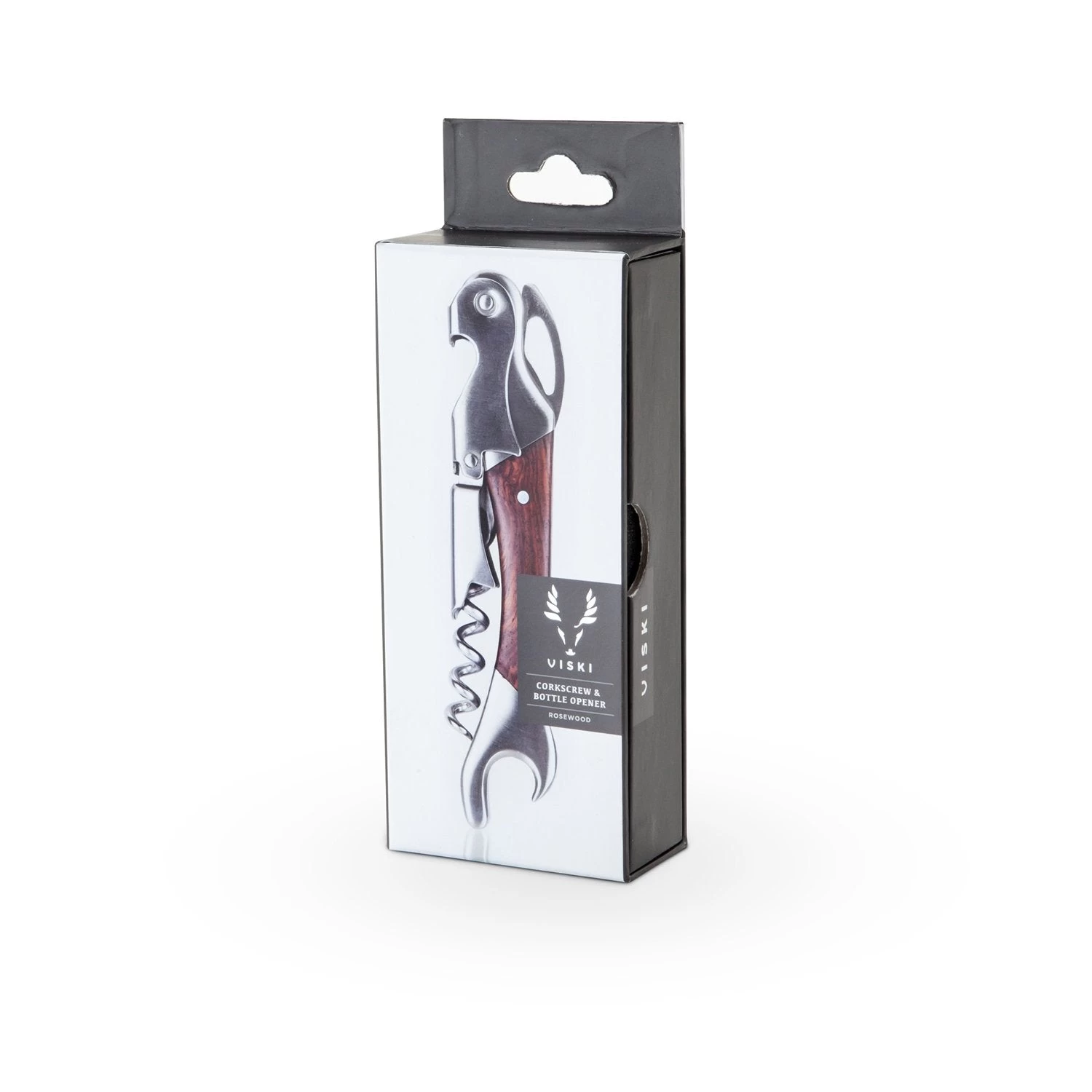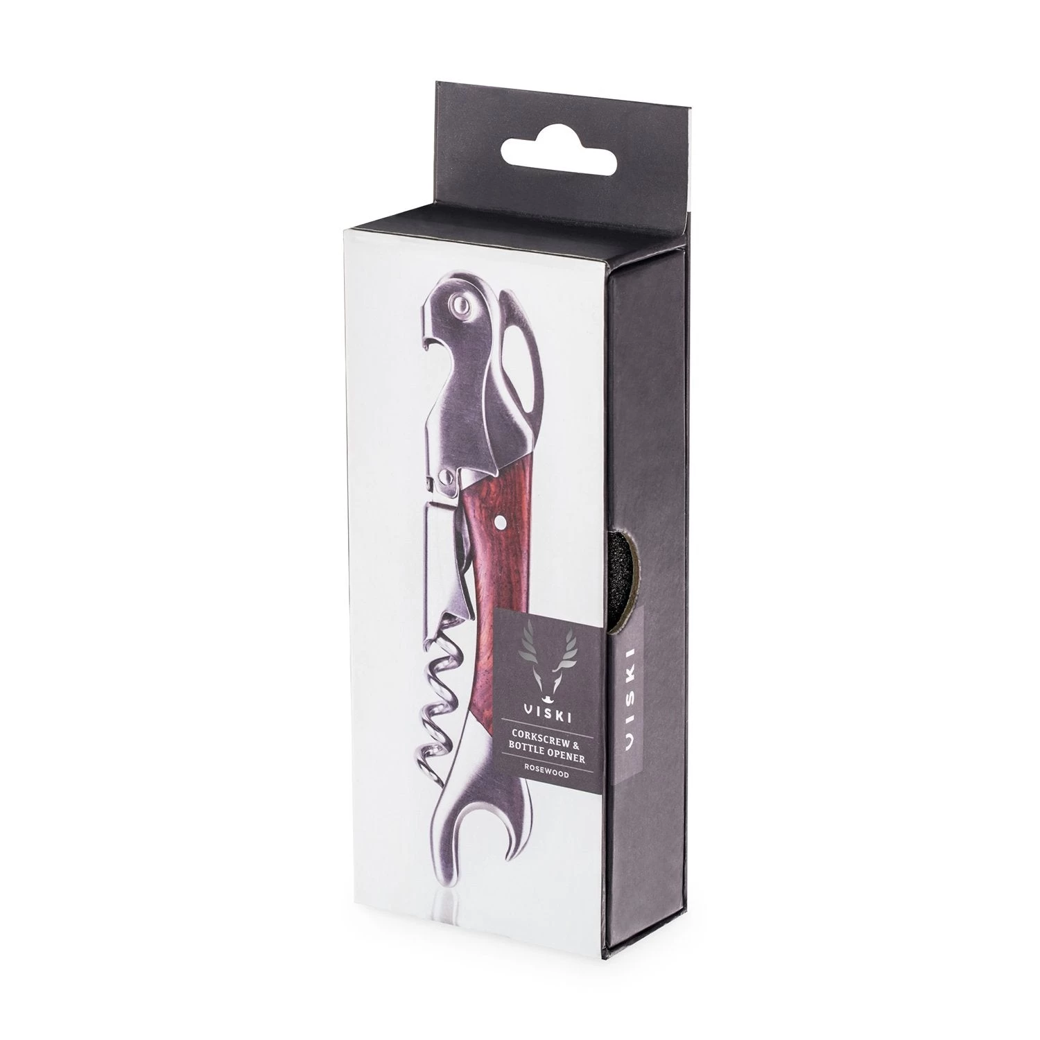 Tired of removing corks with sub-par tools? Our corkscrew comes with all the necessary features to pop corks with ease and class. Whether you enjoy entertaining from home or you work in a wine restaurant, this wood-handled corkscrew is sure to add extra class to the cork popping experience.