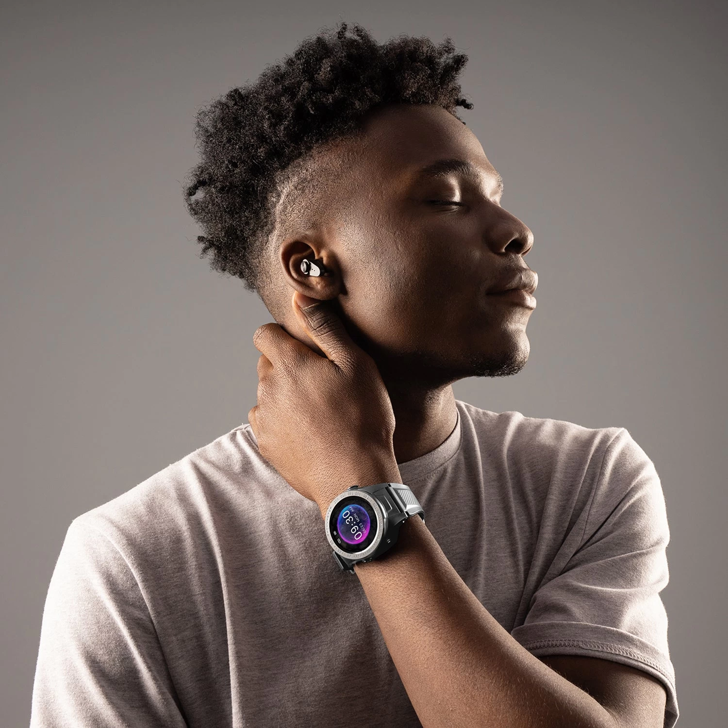 With a large and high-brightness display for enhanced readability and advanced performance features, Wearbuds Watch is built to help you keep up on all your goals. Track your activity, listen to music, answer calls, and much more, all from the comfort of your wrist.