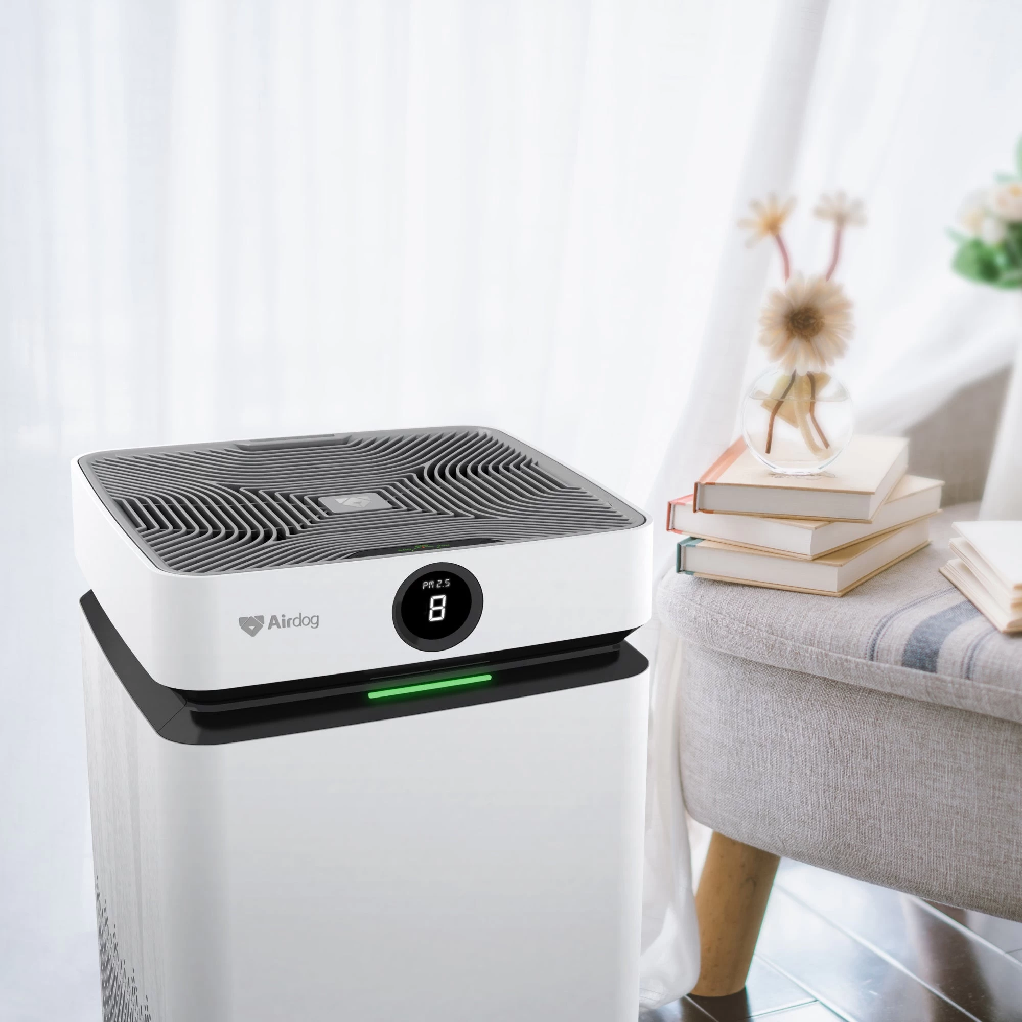 Designed to be the ultimate performance air purifier, Airdog X8 is the largest of the Airdog X Series line of purification. With a high and mighty CADR rating, Airdog X8 can move 470 cubic feet of clean air per minute, allowing up to 3000 square feet of continuous purification – doubling the power of the Airdog X5. Using Airdog’s patented TPA Technology, Airdog X8 can collect and destroy harmful particles as small as 14.6 nanometers, this includes viruses such as influenza and COVID-19! In addition to using 5 reusable layers of filtration, Airdog X8 also includes a wireless Air Quality Index Sensor, allowing you to test the air quality throughout your entire home or workplace!