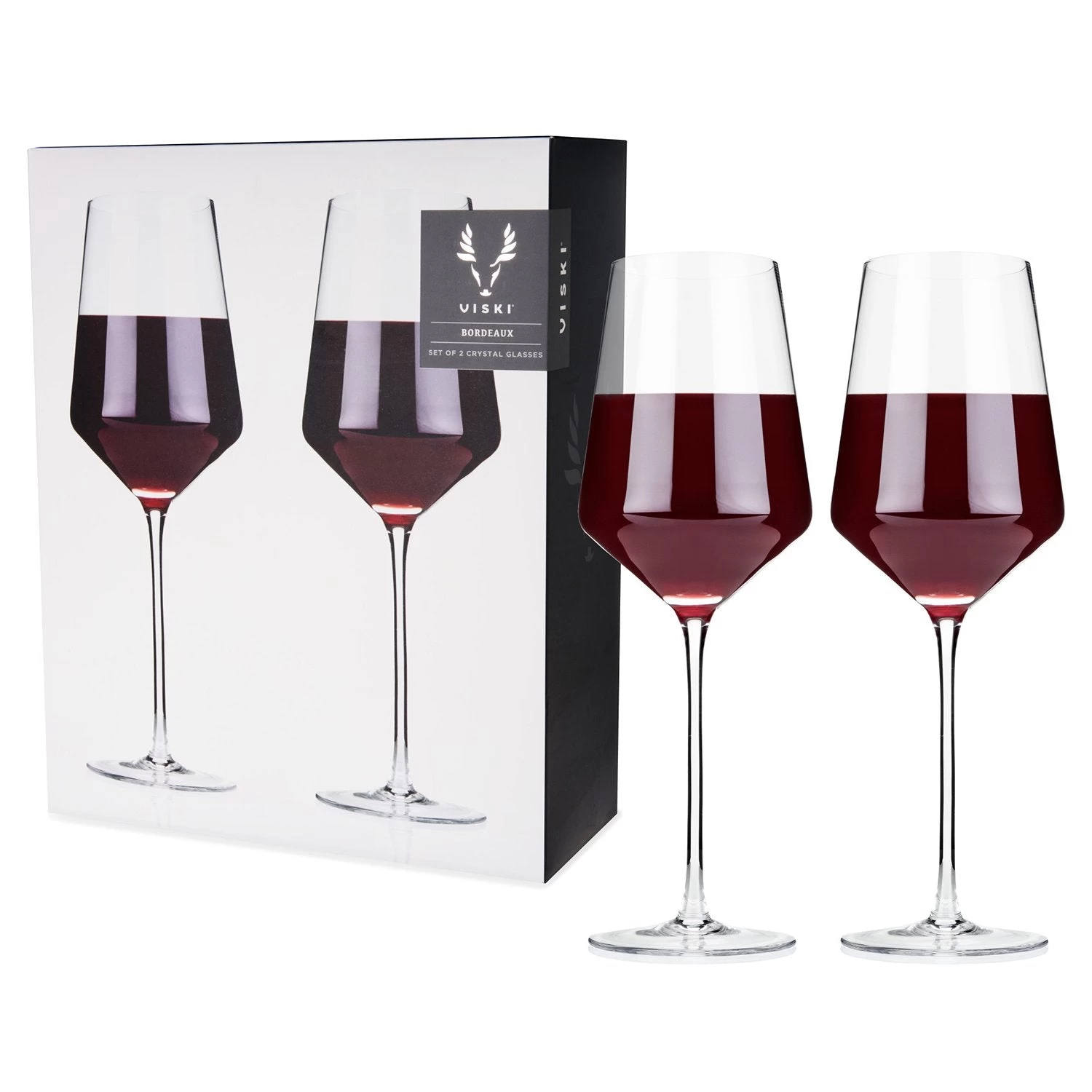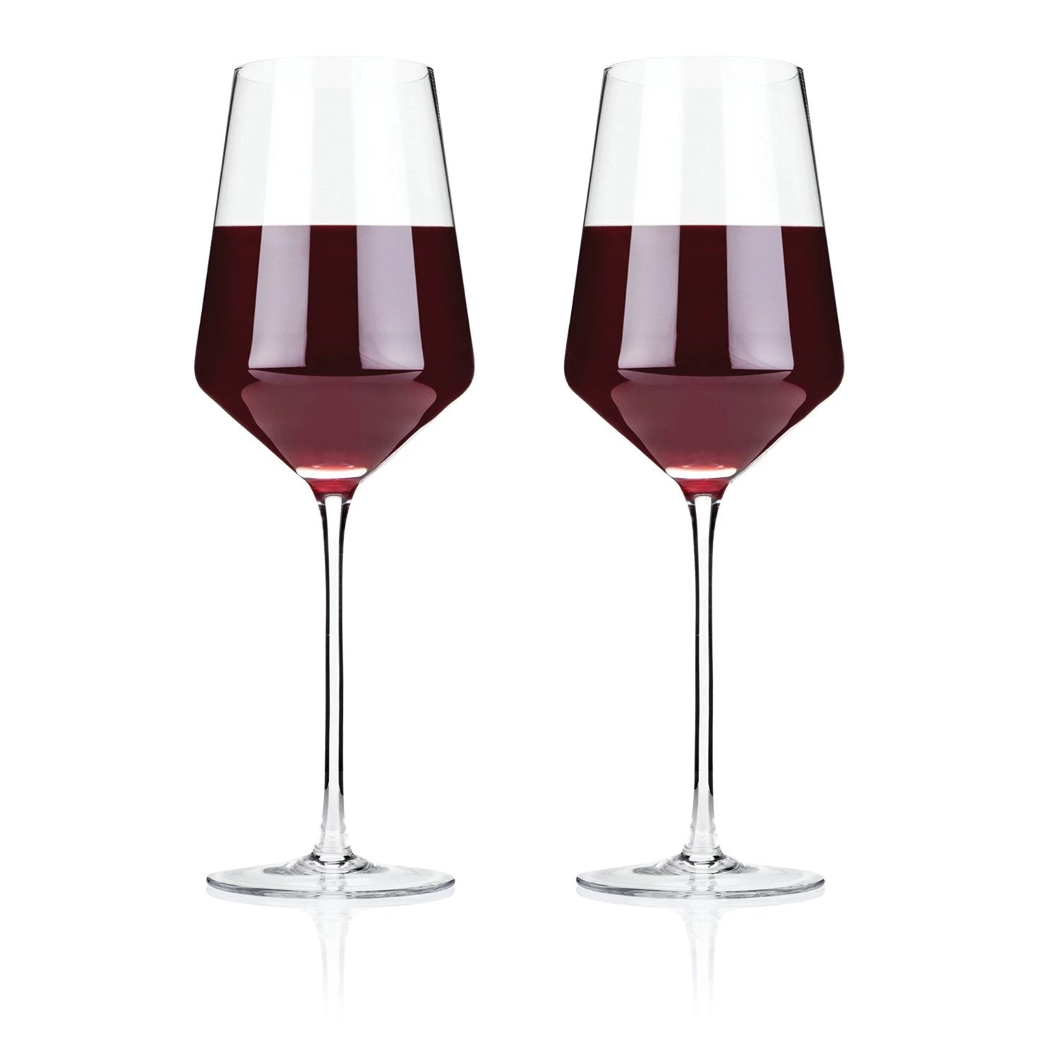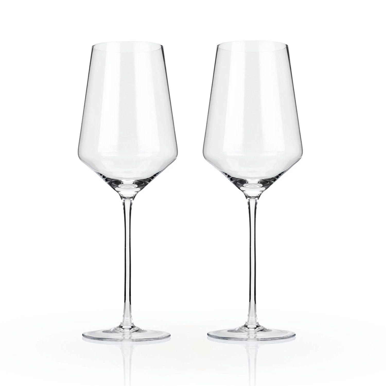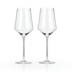 Modern and classy, these glasses are sleek with precise angles. They are perfect for any occasion or the finest of dinner parties. The well-crafted construction results in a pair of wine glasses that will stand the test of time.