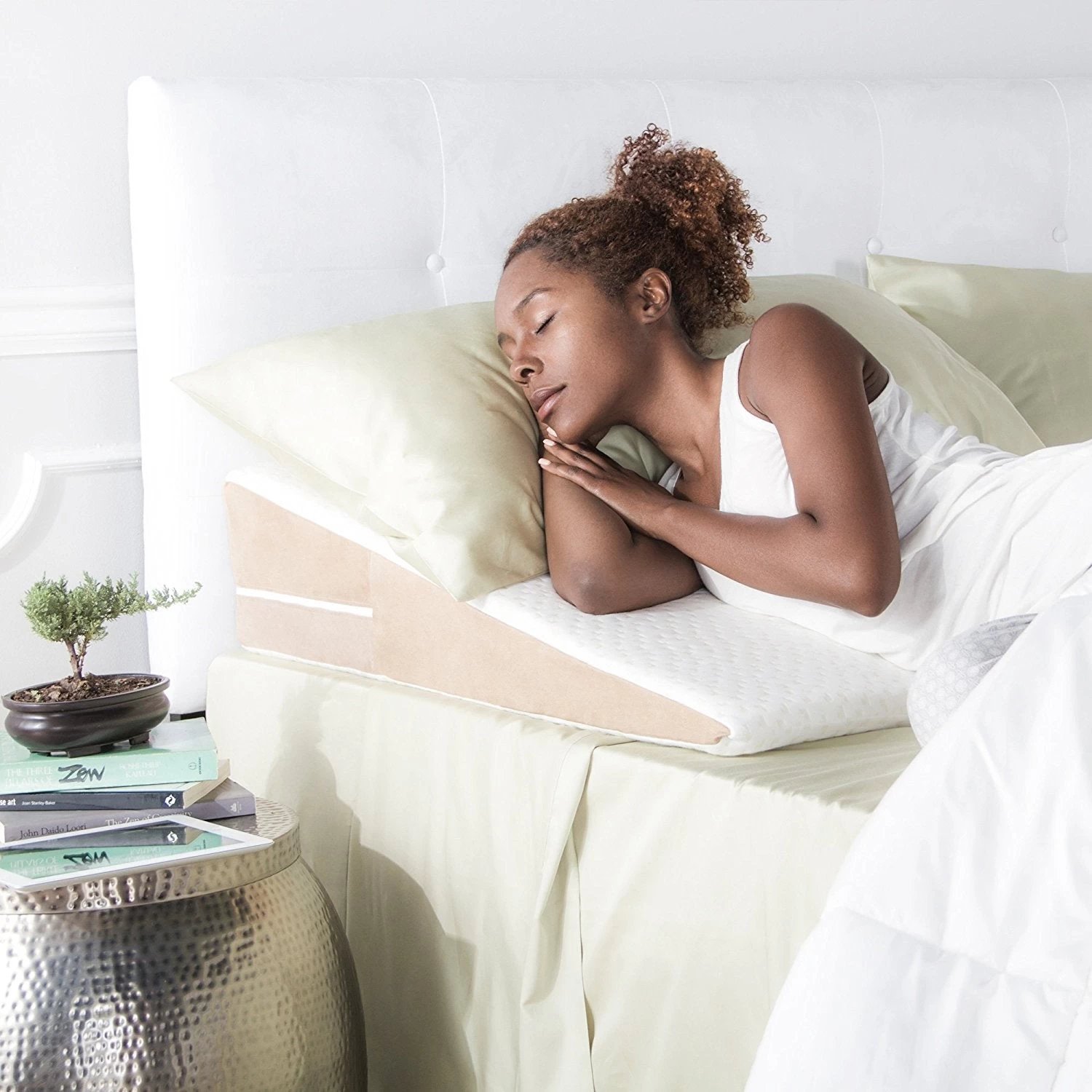- Slant Pillow provides a safe and drug-free solution to relieving the symptoms of acid reflux, GERD (gastroesophageal reflux disease), and sinus problems while sleeping. Precise angles and elevation use gravity to provide breathing comfort, offers pressure relief, diminishes post-surgery and injury swelling, and helps relieve swollen feet. Made from a comfortable, supportive 1.5 density urethane foam with a 1-inch layer of memory foam on top for extra comfort.