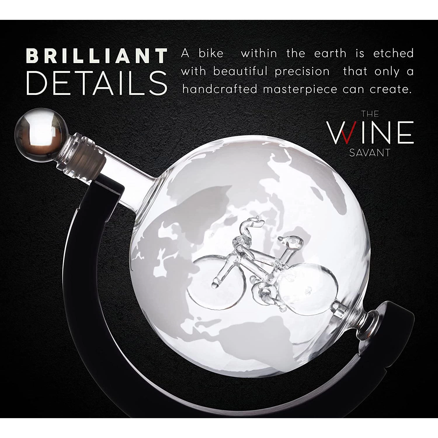 FINE ETCHING – BRILLIANT DETAIL WORK: The bicycle inside the decanter is precision etched with beautiful handcrafted details. The rich mahogany stain base offers a refined, masculine, and stately dramatic appeal. Display on desktops and bar carts.