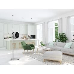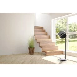 “What is your product,, how does it work? The BONECO F235 allows for adjustable height to fit your individual needs. The head of the fan can be rotated 270 degrees so it can be pointed virtually anywhere you’d like. The superior air circulation is achieved by 3 main points: the single arm design allows maximum air intake, the deep pitch fan blades draw large amounts of air through the fan, and the uniquely curved shape of the front grid boosts the fans airspeed. This all allows for a truly versatile fan. Point it at the ceiling for the signature air shower feeling and to reduce hot and cold zones, direct air between multiple floors, pull fresh air indoors, or use it with your air conditioner or furnace to achieve a uniform temperature within your space. The F235 also offers lower fan speeds for those who prefer direct cooling. The height is adjustable by adding or removing the supportive poles. At a height of 19”, 33.5”, or 47.6” tall, the F235 is perfect for single rooms, large open spaces or to pull the breeze through an open window. A single security screw is used to fix the fan blade, this makes the fan safe in use and the maintenance very simple and easy. The top part of F235 includes the output regulator with the mentioned 32 speed levels – Level 1 – 16 are for direct cooling and level 17 – 32 are for indirect cooling. A display is included on the base where users can see on which level they are using the fan. Furthermore, when using the BONECO App the timer function and the display dim levels can be adjusted as per user preference.