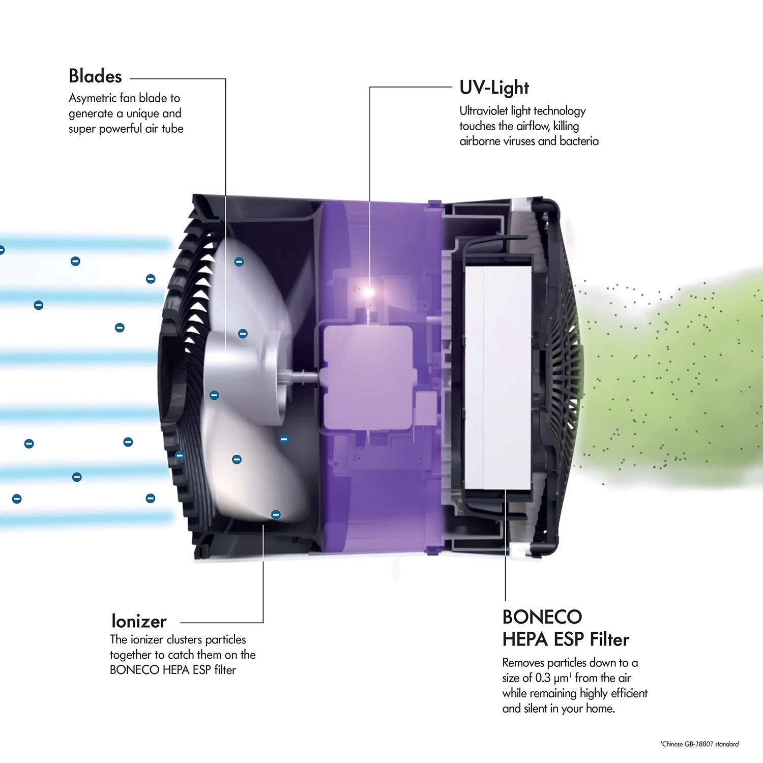 BONECO Clean & Cool Fan – Fan And Purifier In One – Adjustable Height To 33.5″