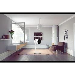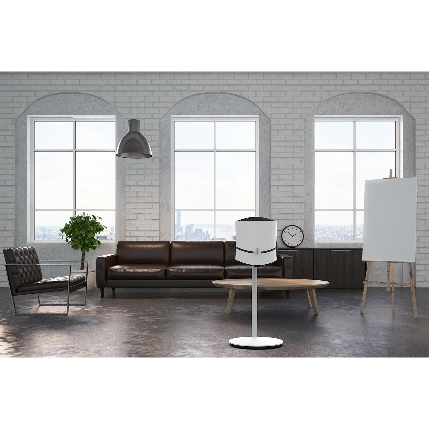 “What is your product,, how does it work? It cleans. Achieved by our state-of-the-art ESP filter technology. It cools. Superior air circulation into every corner of your home. It’s revolutionary. Once used, forever loved. The Clean & Cool Fan combines the refreshing feeling of the BONECO air shower effect with the benefits of clean and healthy air from a purifier. A product that seamlessly fits into your home or office thanks to its classically elegant design. Adjust the strong purified air flow to either use it directly as a quick way to cool down or use the more passively refreshing air-shower effect. The strong fan performance allows the Clean & Cool fans to deliver the purified air to every corner of your home. The head of the fan can be rotated 270 degrees so it can be pointed virtually anywhere you’d like. The ESP Filter has a drastically improved lifetime compared to regular particle filters and can last up to 3 years before it needs to be replaced. The ESP Filter is washable and even dish-washer safe. By cleaning the filter in regular intervals, the filter efficiency is kept high with relatively minimal maintenance. The Clean & Cool Fan can be used with or without the filter for the same benefits as our signature Air Shower fan line. Point it at the ceiling for the signature air shower feeling and to reduce hot and cold zones, direct air between multiple floors, pull fresh air indoors, or use it with your air conditioner or furnace to achieve a uniform temperature within your space. The height is adjustable by adding or removing the connector poles – 19” or 33.5” tall.