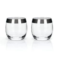 This pair of crystal tumblers resurrects the streamlined aesthetics of mid-century modern design, with sleek chrome-painted rims worthy of the corner office. What better accompaniment to cocktail hour?