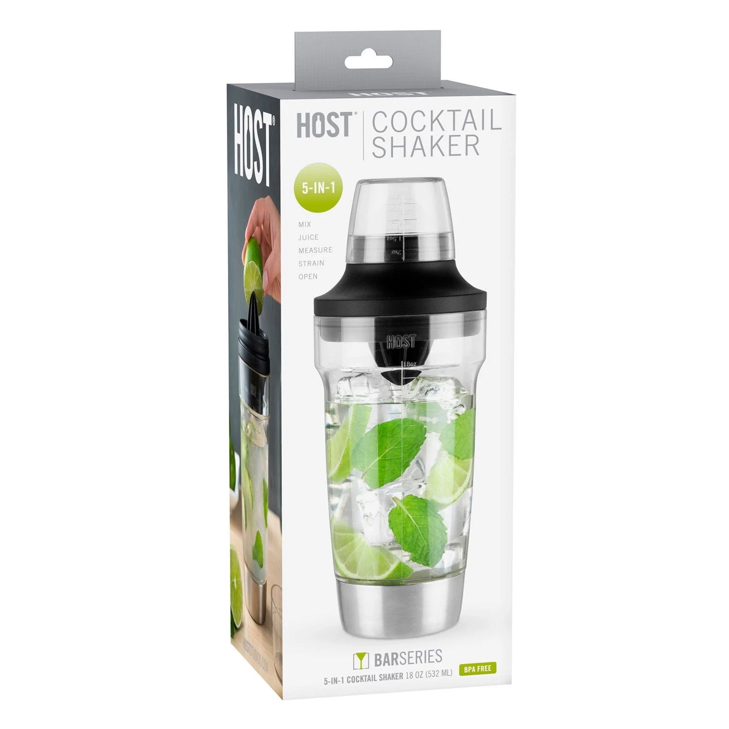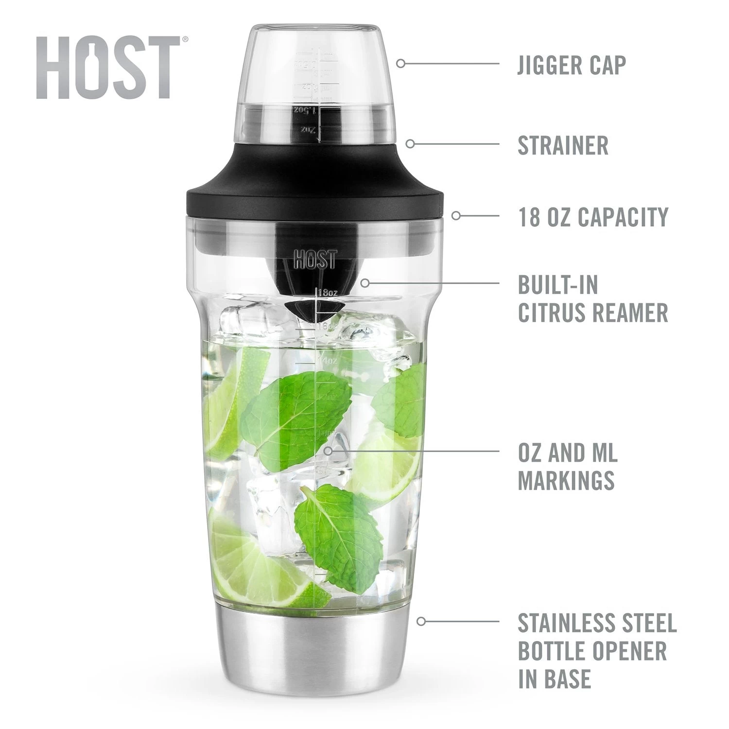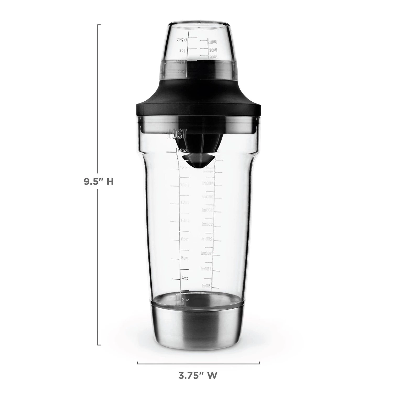 Discover the perfect companion for any cocktail craftsman. Cocktails aren’t just thrown together, they are crafted to ultimate perfection in both taste and design. The Host Cocktail Shaker is for mixologists who care about the art of cocktail making. • 18oz capacity • Measurement markings • Juice reamer • Strainer • Bottle opener To create delicious cocktails, you need bar tools that you can rely on. This transparent cocktail shaker has ounce and millimeter markings for unbeatable accuracy. No longer will you struggle to recreate that one “amazing cocktail” – now you can create the perfect cocktail every time. No one wants extra ice items in their cocktail! That’s why this large cocktail shaker has a built-in strainer for removing unwanted extras, such as herbs and seeds. As well as removing unwanted items, the built-in reamer allows you to add extra ingredients, like fresh citrus juice. As the perfect drinkware tool, this shaker is also useful for those members of the party who prefer drinking from a bottle. The built-in bottle opener removes bottle tops quickly and effectively. A fantastic gift – This cocktail shaker is ideal for Christmas, birthday, anniversary, or just as a surprise gift for those who enjoy making cocktails. It’s also a great gift to the host of any cocktail making event. Our promise to you – Being recognized for outstanding service has remained at the forefront of our brand philosophy, and always will. In the unlikely event that you’re not satisfied; we’ll replace your modern cocktail shaker or return your money.