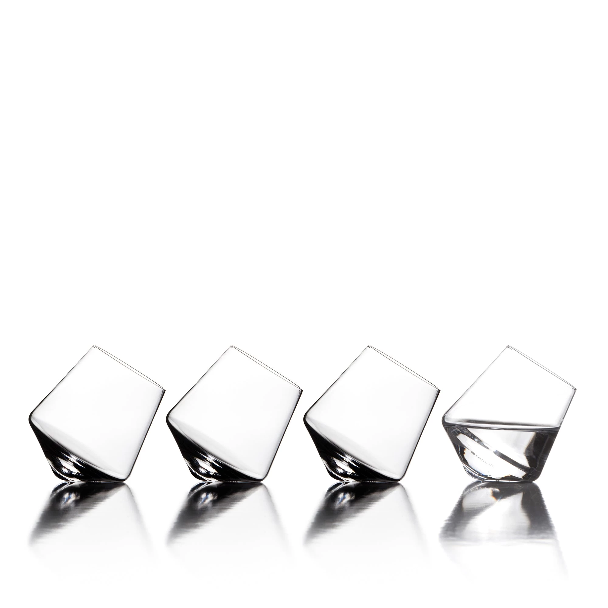 Enjoy a shot of port or sake with this stunning set of four Cupa liqueur glasses. Hand-made from lead-free crystal, their unique stemless construction creates a swirling rotation when set down—which assist the oxygenation of fine spirits. Enhance the sensory experience of imbibing your favorite drink.