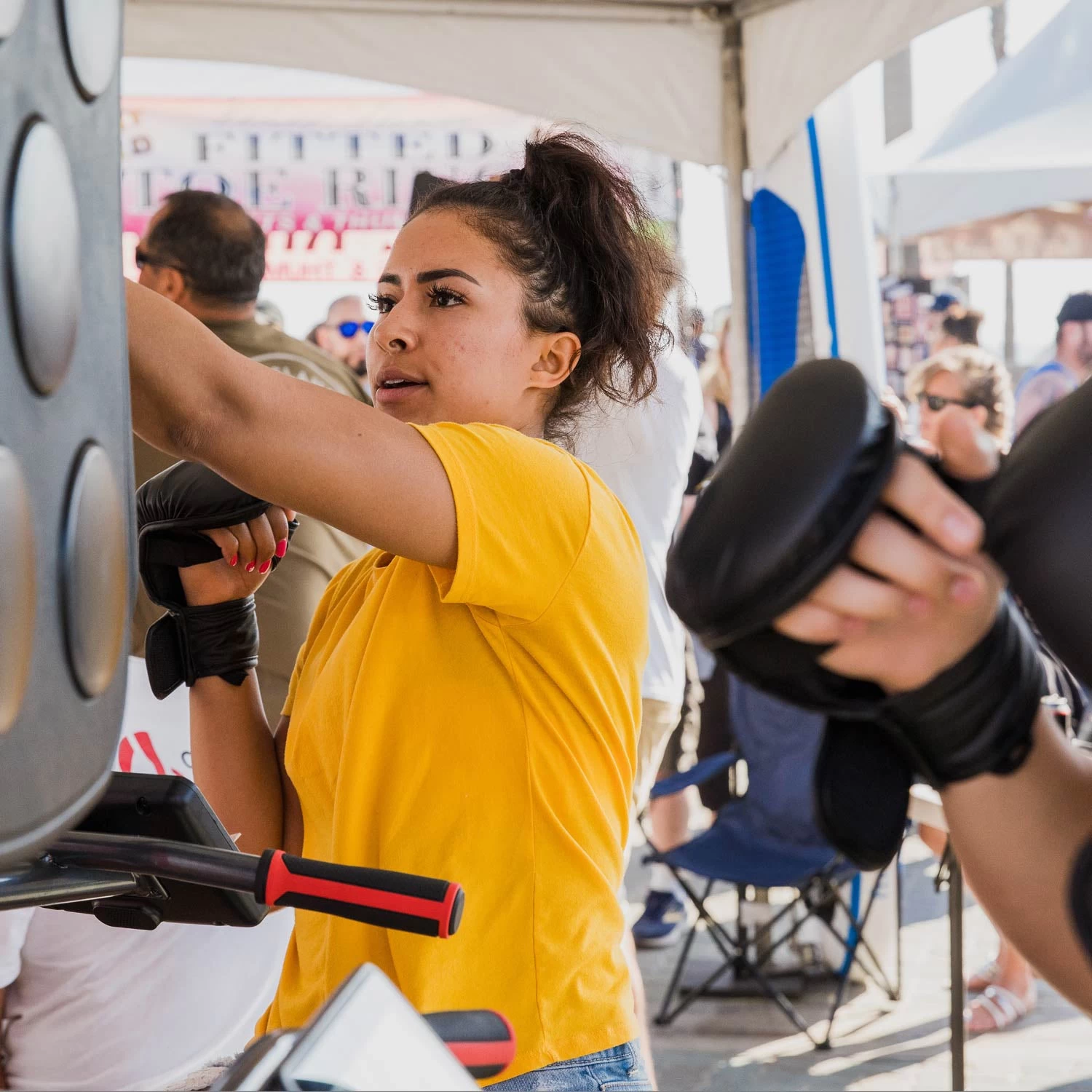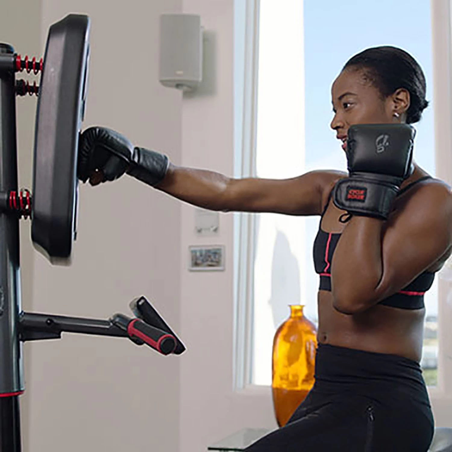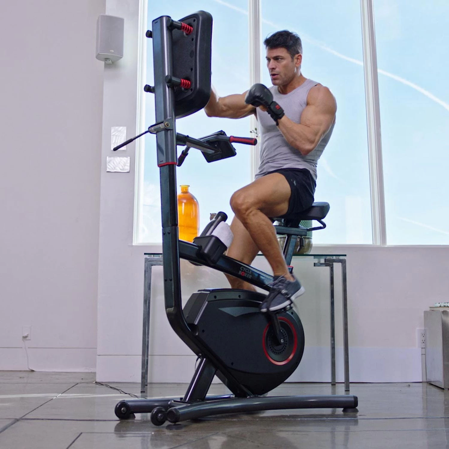 Bring home the revolutionary new product that everyone is talking about. The Cycle Boxer is a truly unique, total body fitness solution that combines cycling and boxing to give you a heart-pumping workout so you can blast away fat, build lean muscle, improve endurance and reduce stress. The scientifically designed gloves interact with the punchpad to record your punching speed and accuracy as the padded buttons light up in an array of randomized patterns to keep you focused and your mind sharp. Plus, when you download the free Cycle Boxer app, you can see stats from previous sessions and start your workout directly from your phone. Experience Total Immersion Fitness – to train your body and your brain. Includes: Cycle Boxer with interactive punchpad and 2 gloves w/sensors Seat Adjustment Between 34.25” x 42.12”, with 4″ fore/aft adjustment Resistance System Magnetic Eddy Current Brake Resistance Levels 16 Resistance levels, 12 punch levels Pedals Bi-Directional; forward and backward. Adjustable pedal strap Dimensions 43.6” L x 27” W x 63-74.5” H Max User Weight 300 lbs. Warranty Frame: Lifetime, Parts: 1 Year, Labor: 1 Year