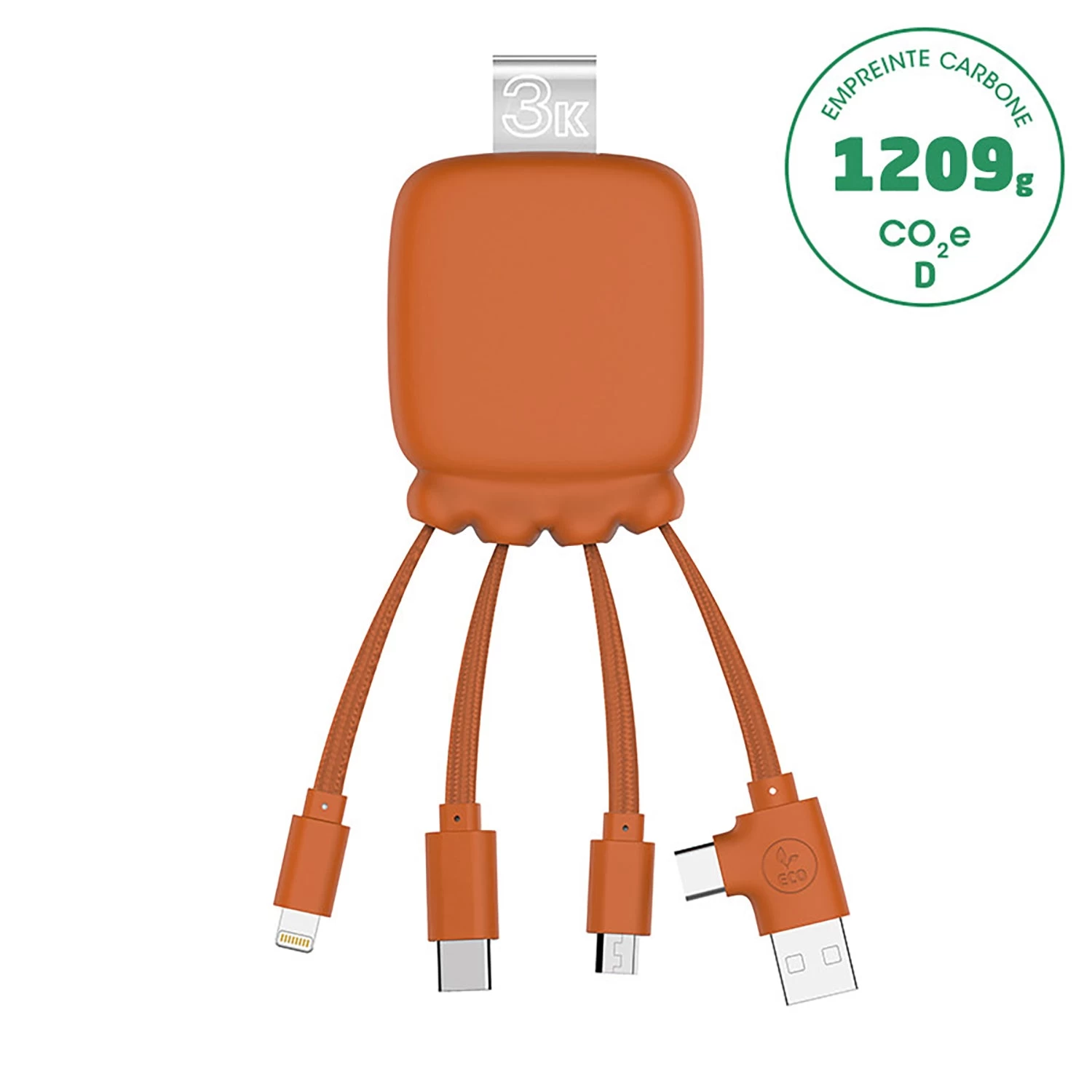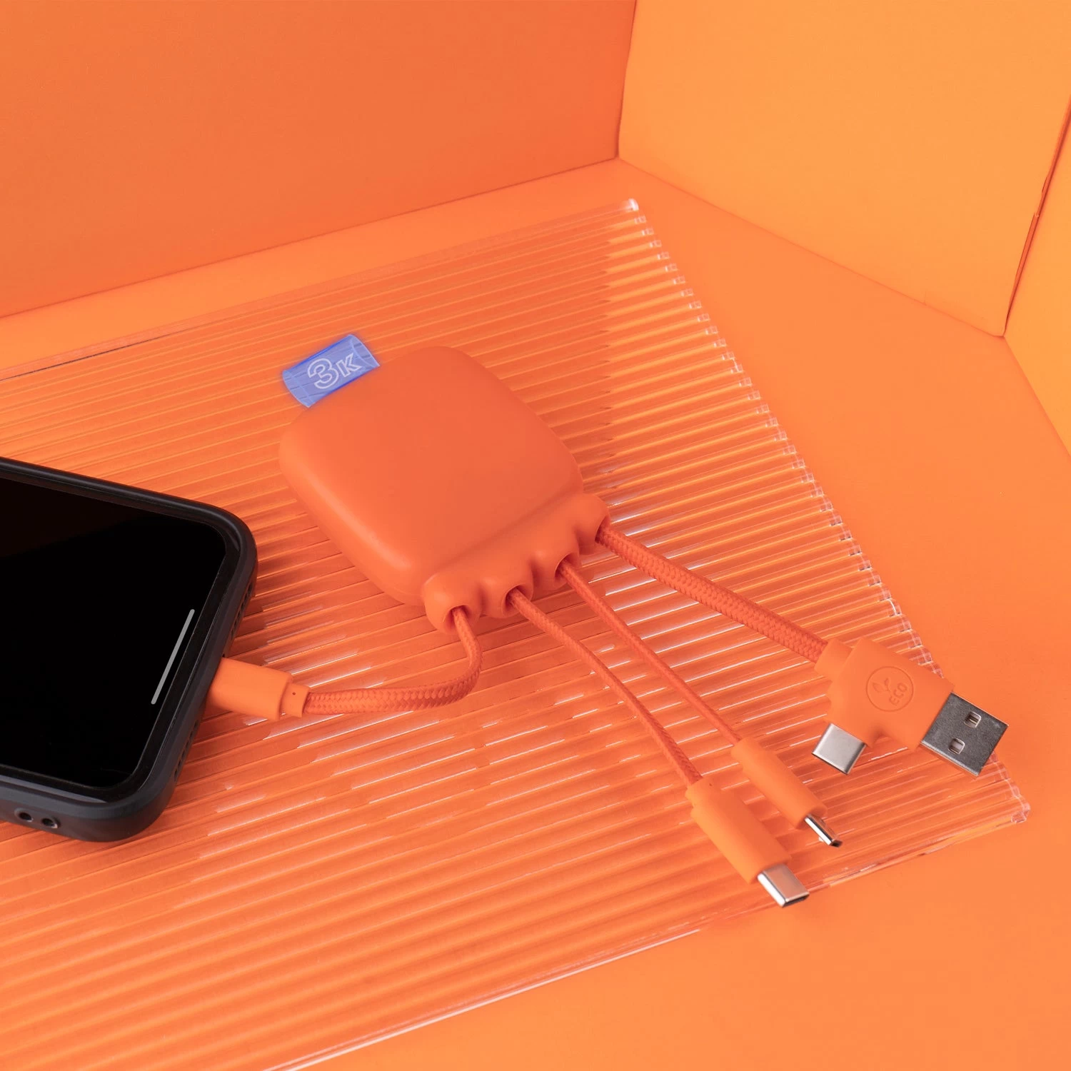 The planet-friendly charger- Part of the Organic Collection, Xoopar introduces Gamma, a fully universal 3,000mAh on-the-go charging solution for smartphones. The super compact enclosure is bio degradable and made of a mix of natural wheat and plastic; the braids of the cables are made of recycled plastic bottles. Buy responsibly and have a positive impact on the planet! LED charge level indicator. This power pack features a USB connector, a connector for Apple devices, a USB type C connector and a micro USB connector for old smartphones.1 Year warranty.