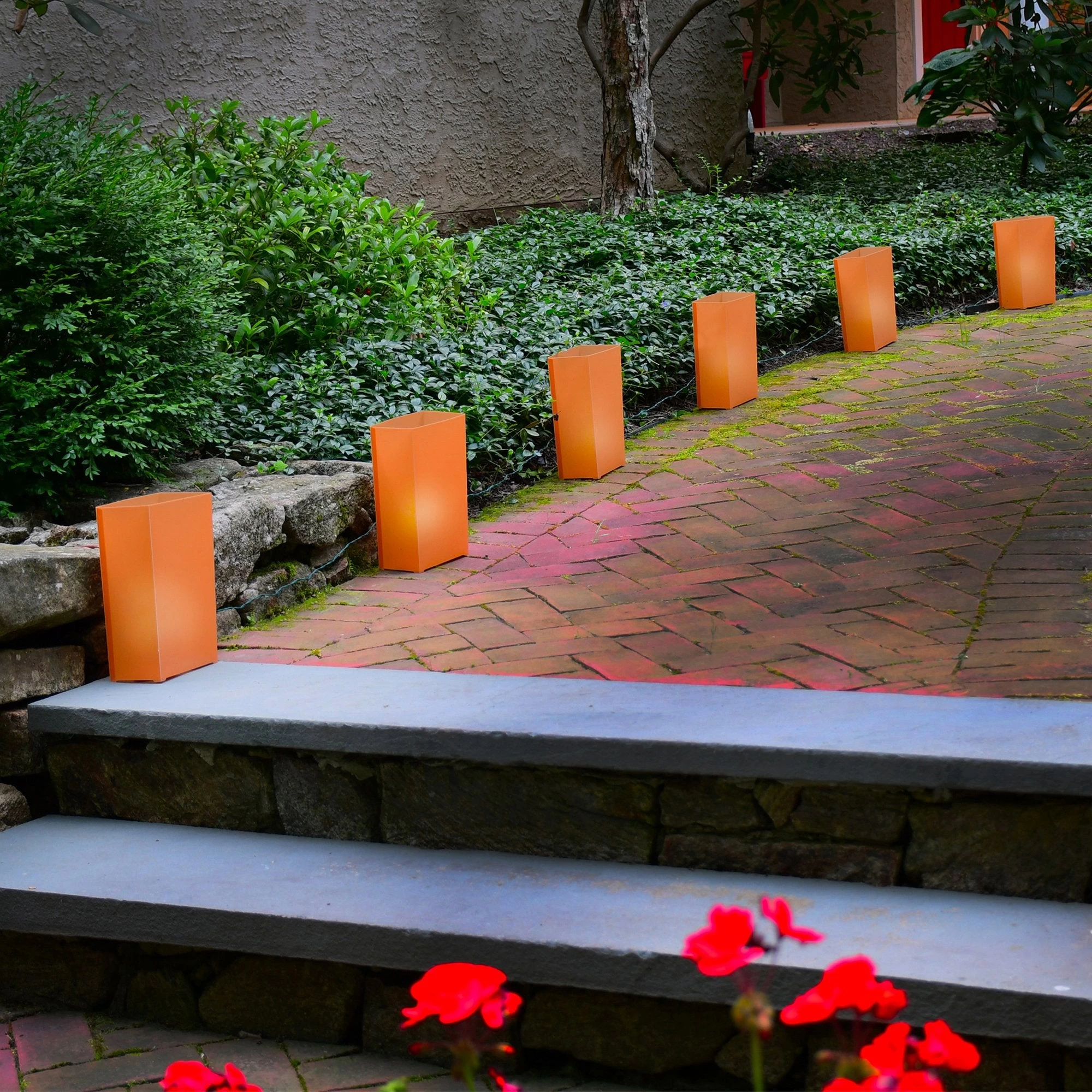 This set of 6 electric LED luminarias add beautiful ambient lighting along your walkway, sidewalk, driveway, entryway or pathway. These durable weather resistant luminarias are held secure in the ground with included anchor stakes. The 360″ electric cord comes with 18 LED lights (3 per luminaria) and end to end connectors to cover a larger area.