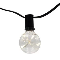 The electric bulb string light with enclosed LED fairy lights creates a trendy atmosphere to your indoor or outdoor décor. Each bulb is enclosed with soft white LED fairy lights with a silver wire. String lights are the perfect accent lighting to a patio, deck, porch, indoor space or party tent.