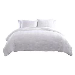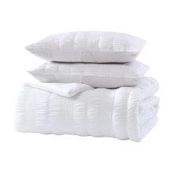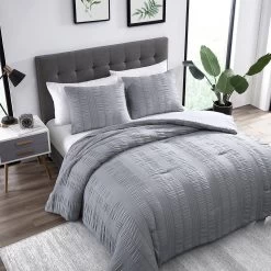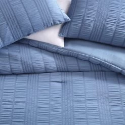The Nesting Company Elm 3 Piece Seersucker Comforter Set will breathe new life into your space. It’s cloud like feel and soothing color will add a sense of quiet comfort into any bedroom. The Seersucker stripes give depth and dimension to your room as well as an effortlessly stylish look. This set is made from 100% polyester super soft microfiber for a cloud like feel. There are 4 beautiful earth tone color options available for this set, giving it it’s stylish look. This set is machine washable for easy care.