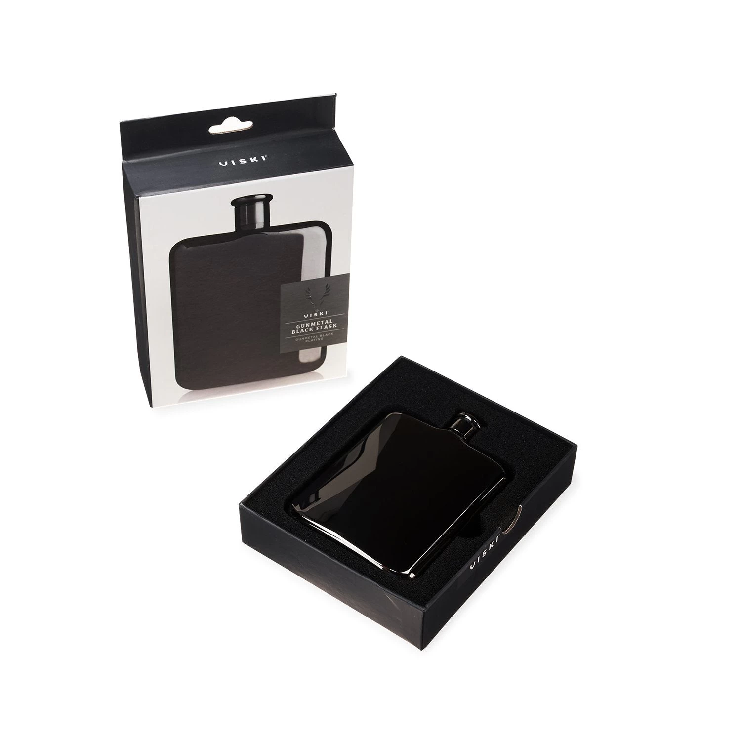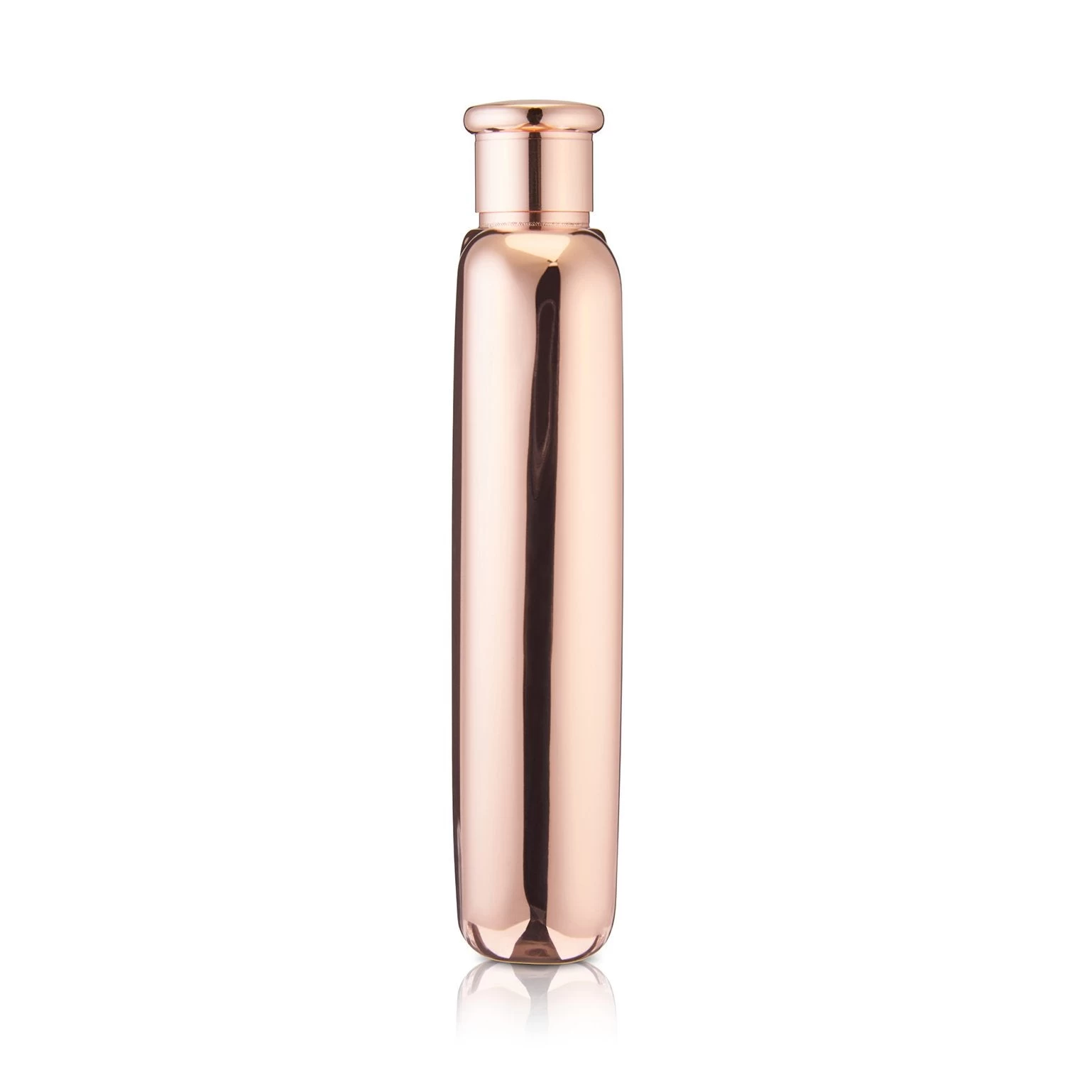Curious how even the best liquor tastes better from a bright metallic flask. Electroplated and polished six-ounce vessel is liquid-tight and crowned with a weighty, equally lustrous cap to hold any desired liquor.
