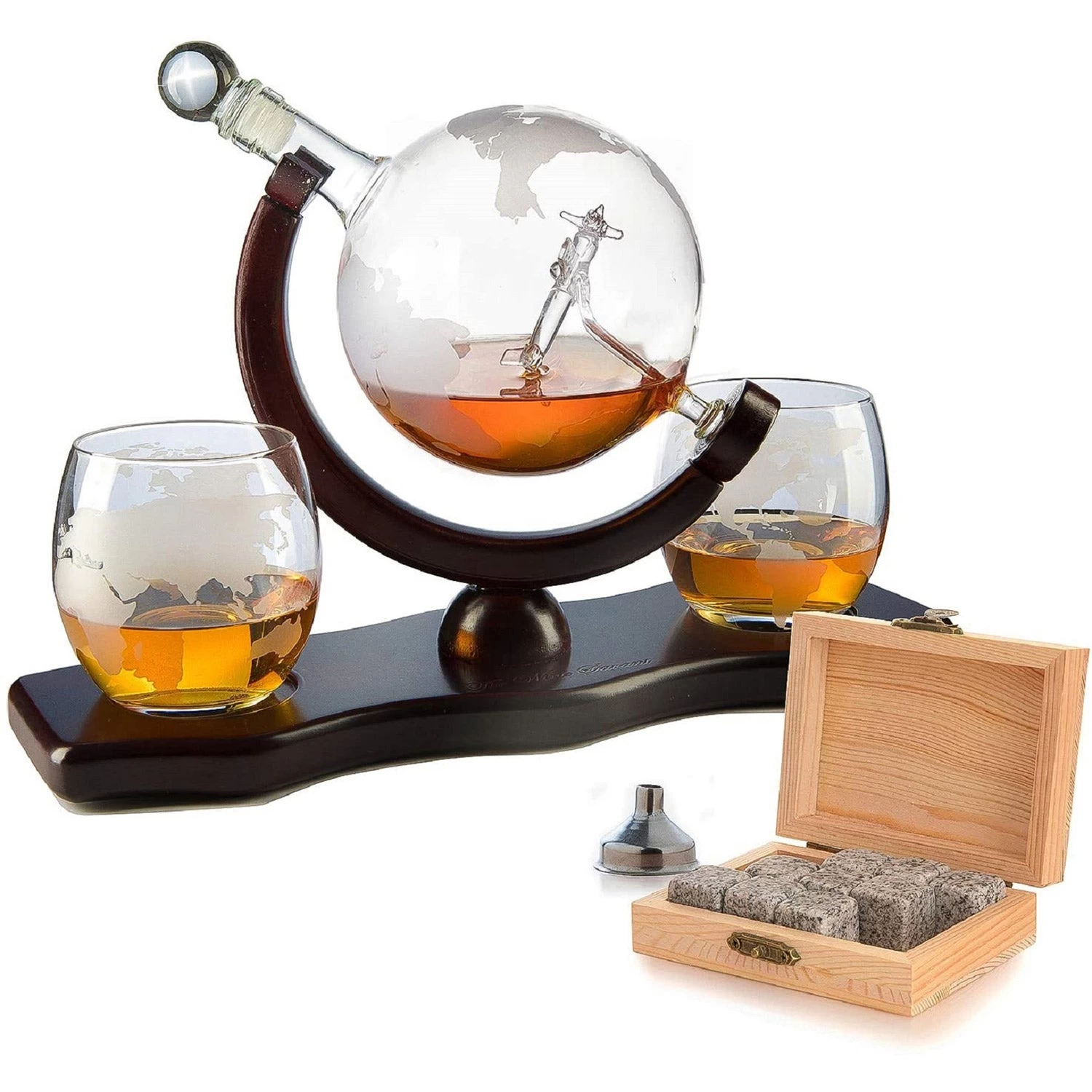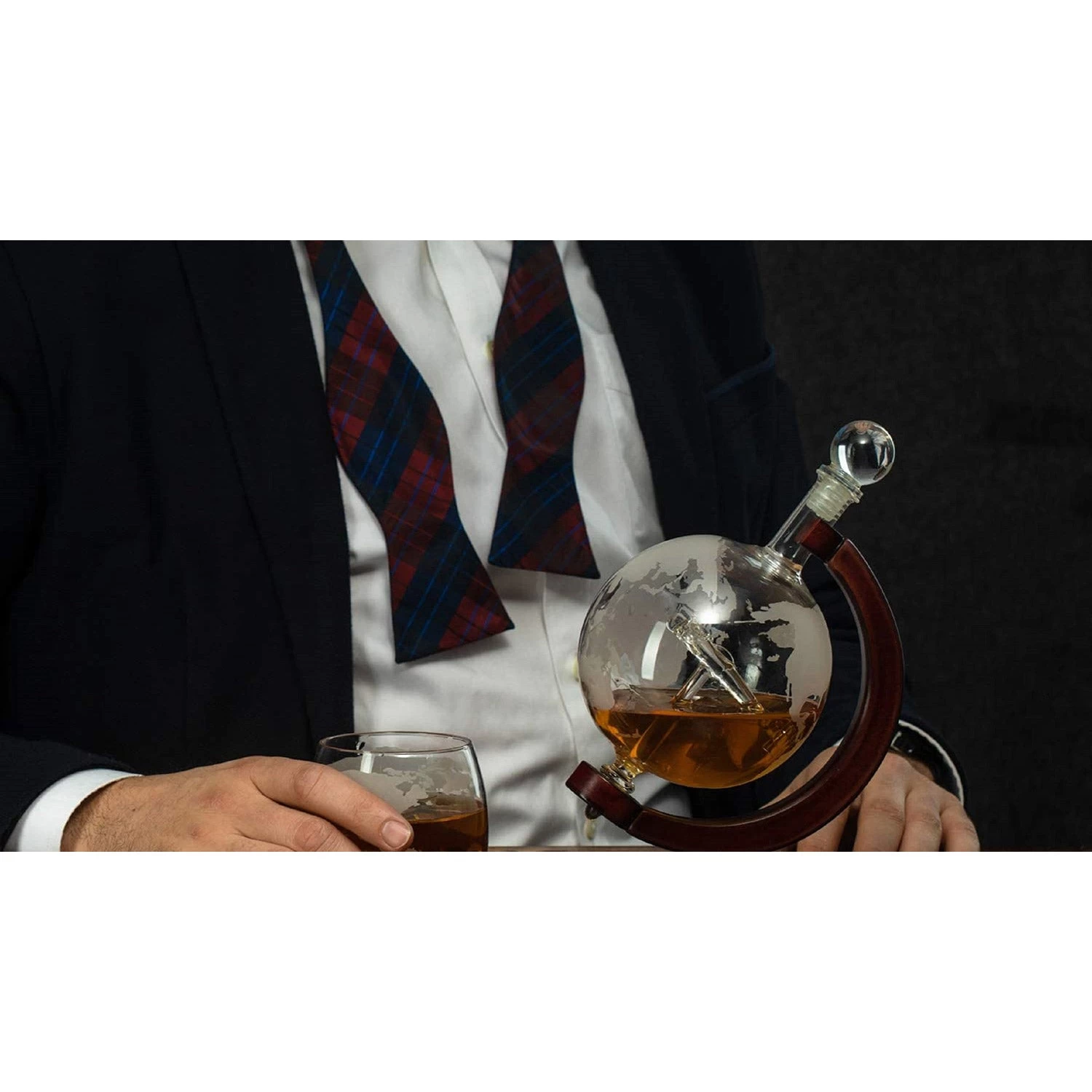 THE LUXURIOUS DECANTER EXPERIENCE: Embrace your love of both travel, adventure and a good whiskey/scotch. This beautiful mouth blown globe decanter is a must have. The Airplane model is reminiscent of old times and the wood base has an amber hue which makes this a beautiful home piece. Comes with 3 10 oz Glasses.