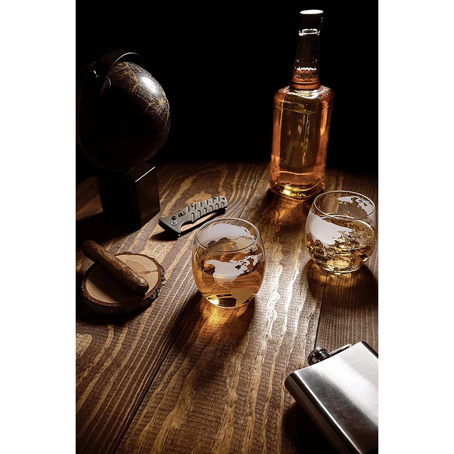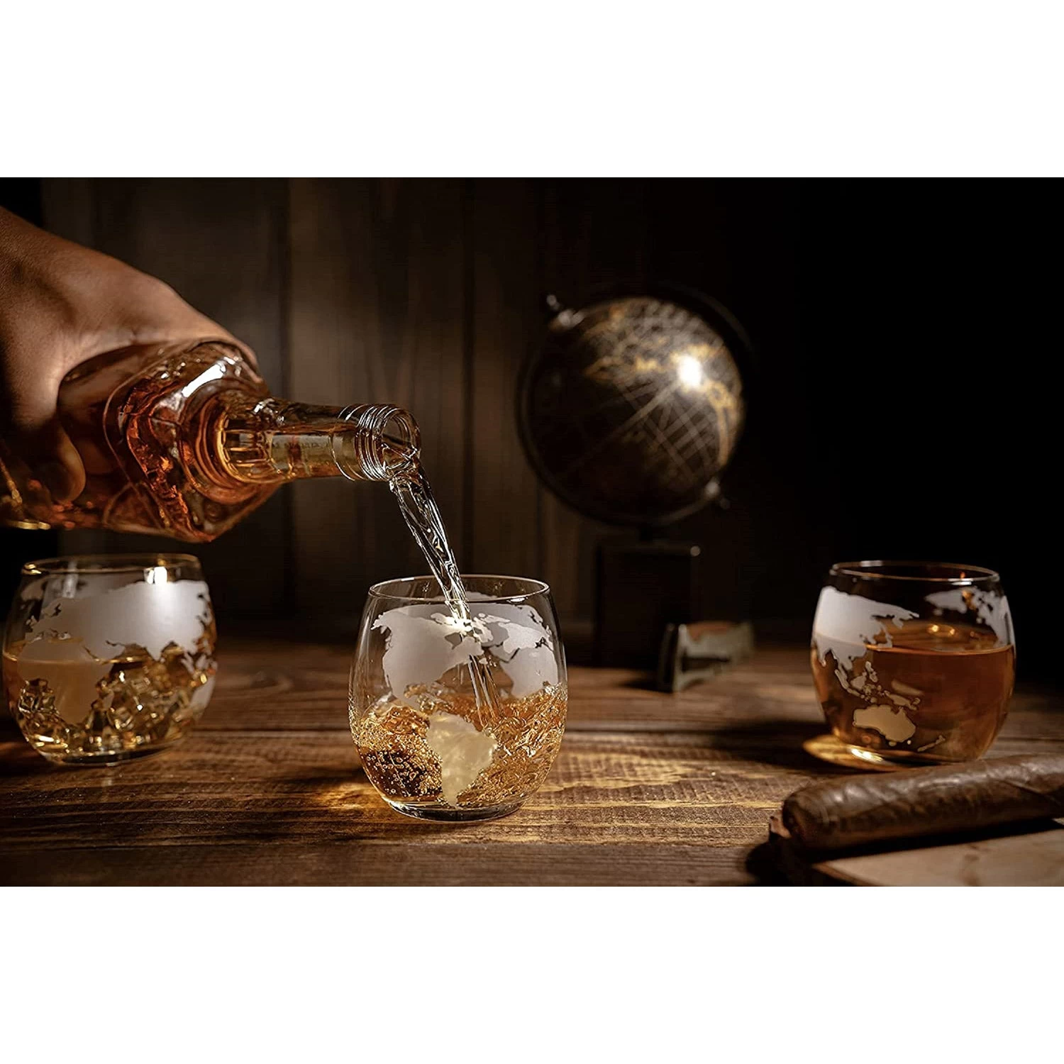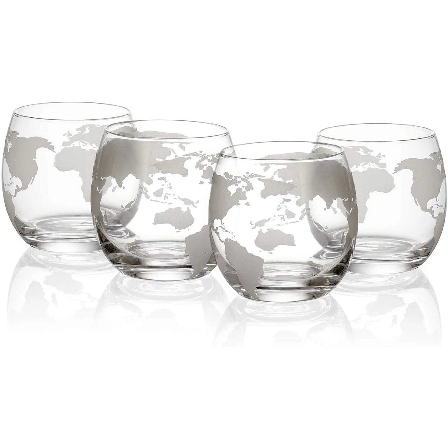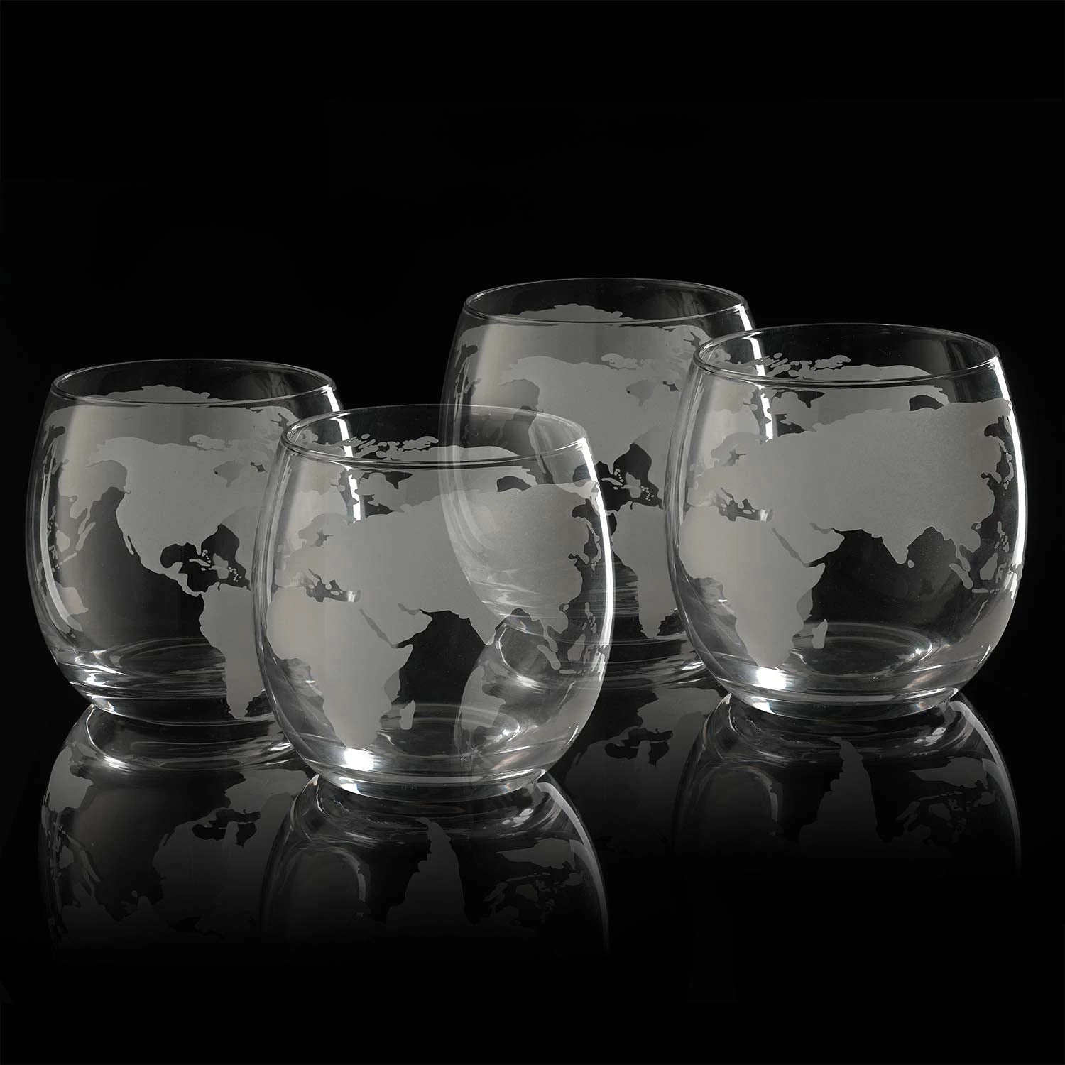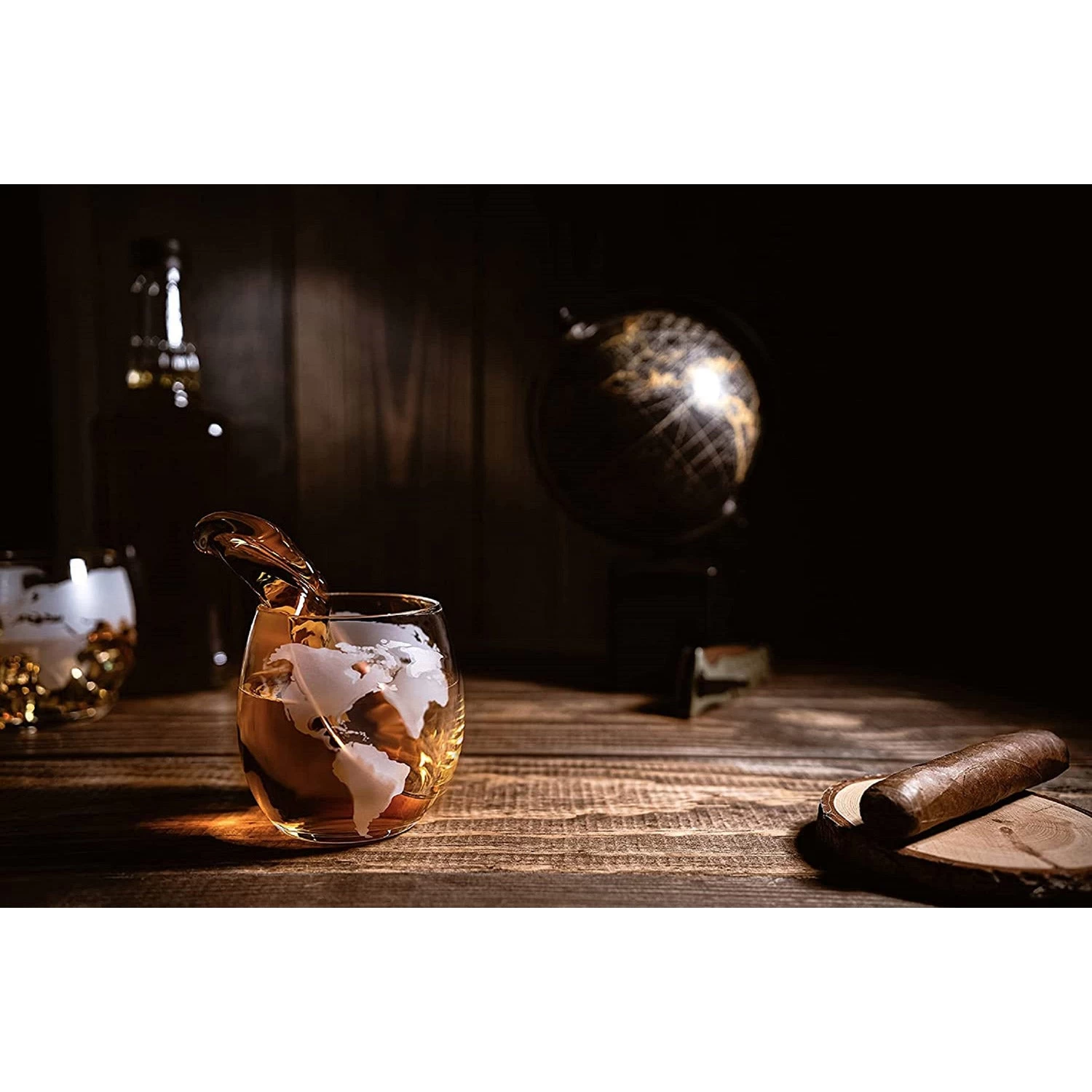 IMPREES WITH ELEGANCE AND STYLE: Etched intricately with a world map, these glasses create a unique discussion piece which will impress all your guests