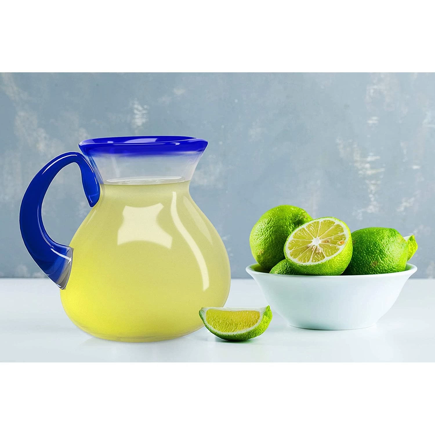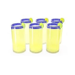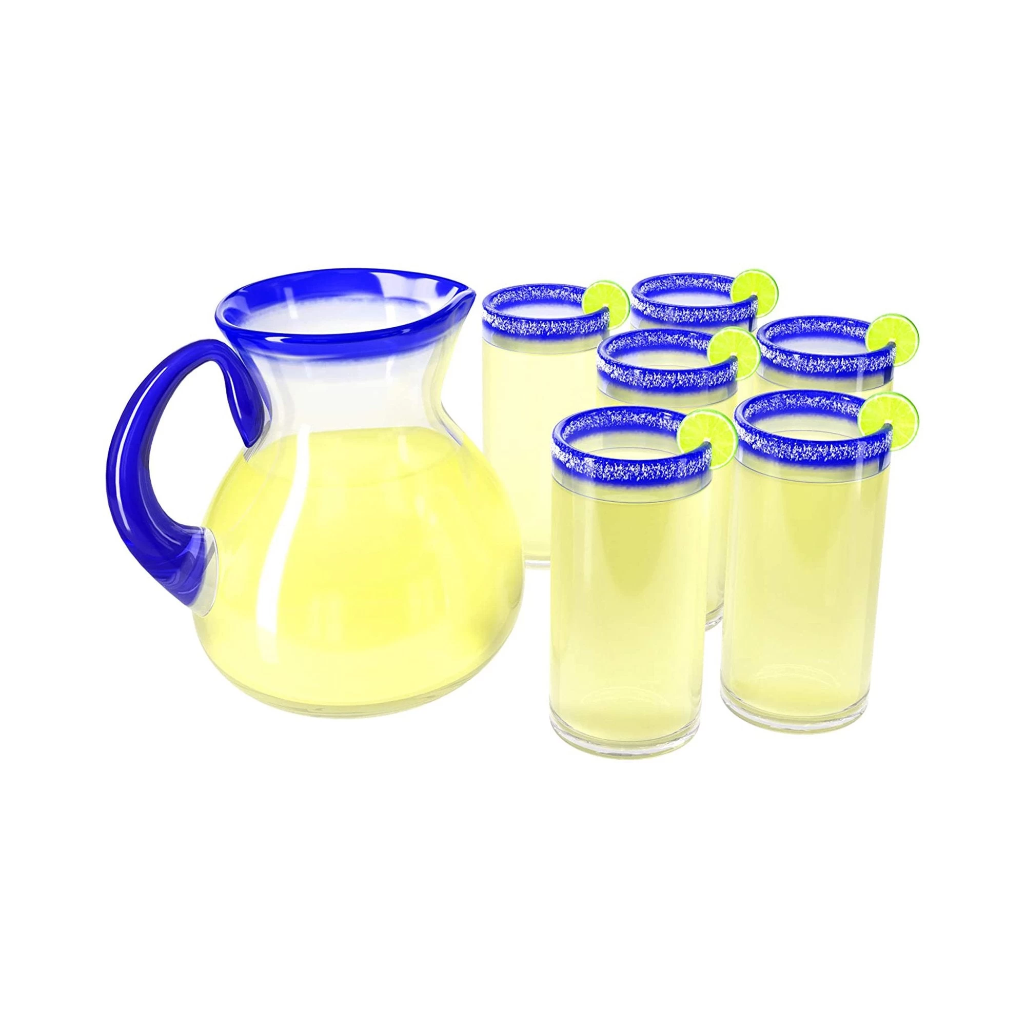 MADE FOR A FIESTA: Each Glass cup is adorned inside with a hand-painted design. It includes 6, 16 ounce glasses and a traditional style 64 oz pitcher.