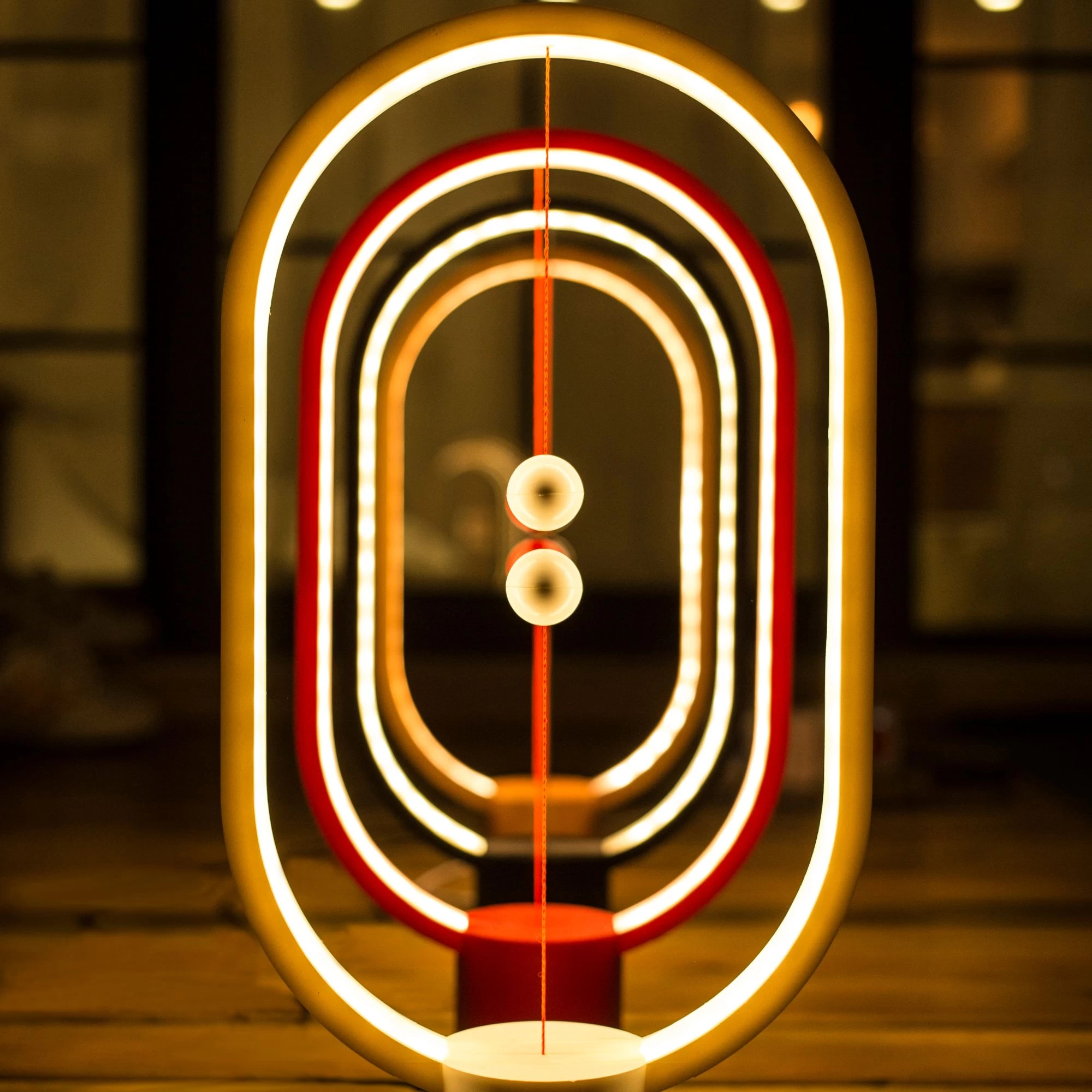 Switching the light in mid-air: “Heng Balance Lamp” is a series of desk lamps with a twist: where most lamps have a standard switch the Heng Balance Lamp is controlled by two wooden balls. When you lift the lower wooden ball, it will be attracted by the hanging one and remain suspended in mid-air, switching on the light.