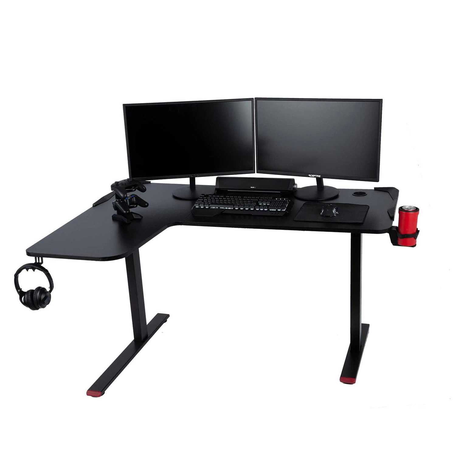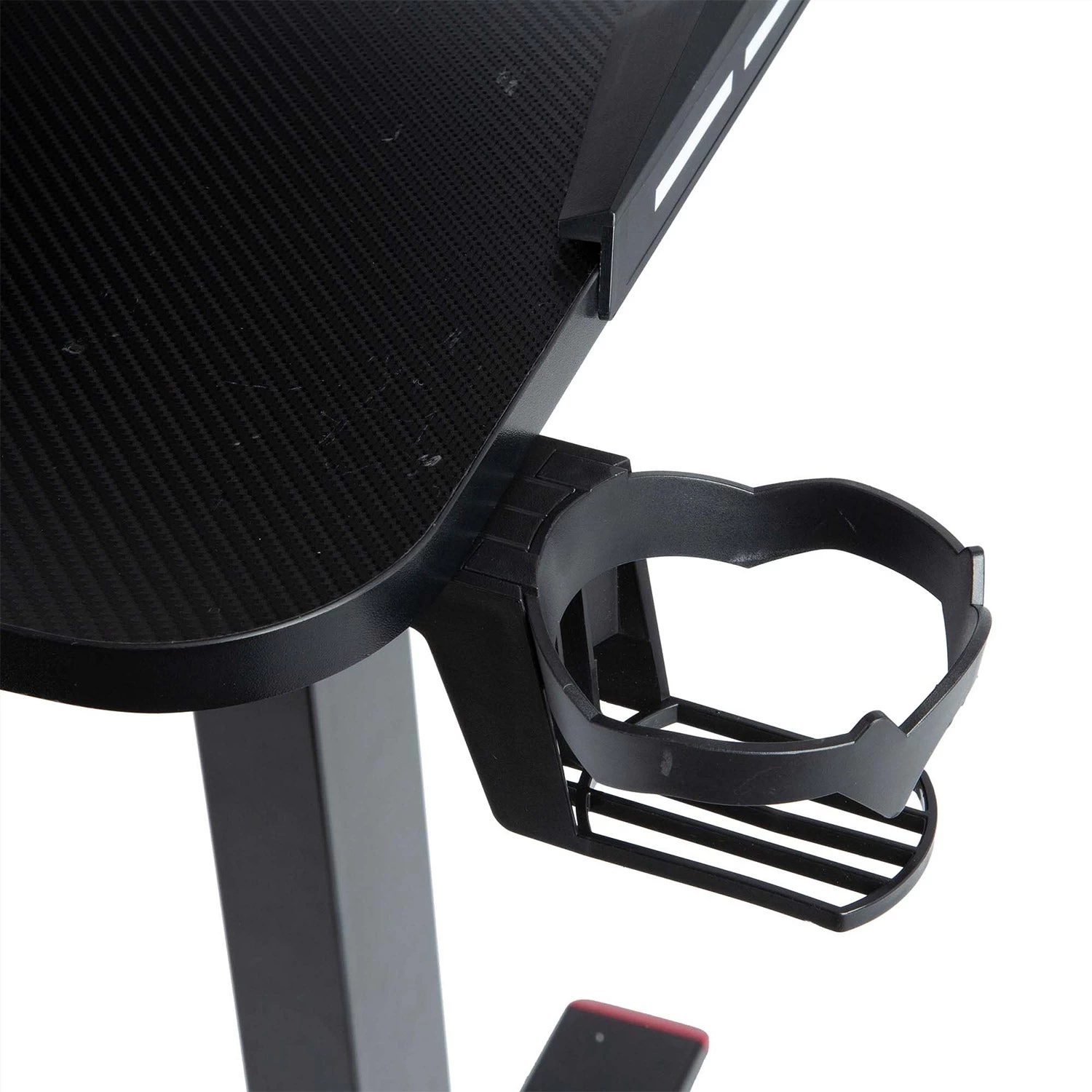 – Large Gaming Surface: The Faze gaming desk has a sleek, carbon fiber texture and the gaming surface has ample space for your gaming monitors, keyboards, and additional gaming gear. Comes with cable management system, headphone hook, cup holder and gamepad holder.