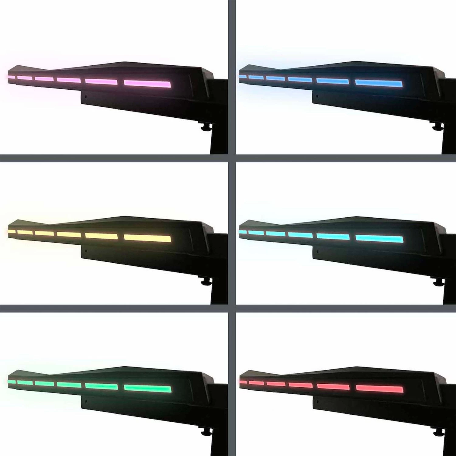 – RGB LED Extension Stands: Equipped with RGB LED lighting for a better gaming experience. Connect the two included extension stands on both sides of the desk to create an illuminated gaming ambiance.