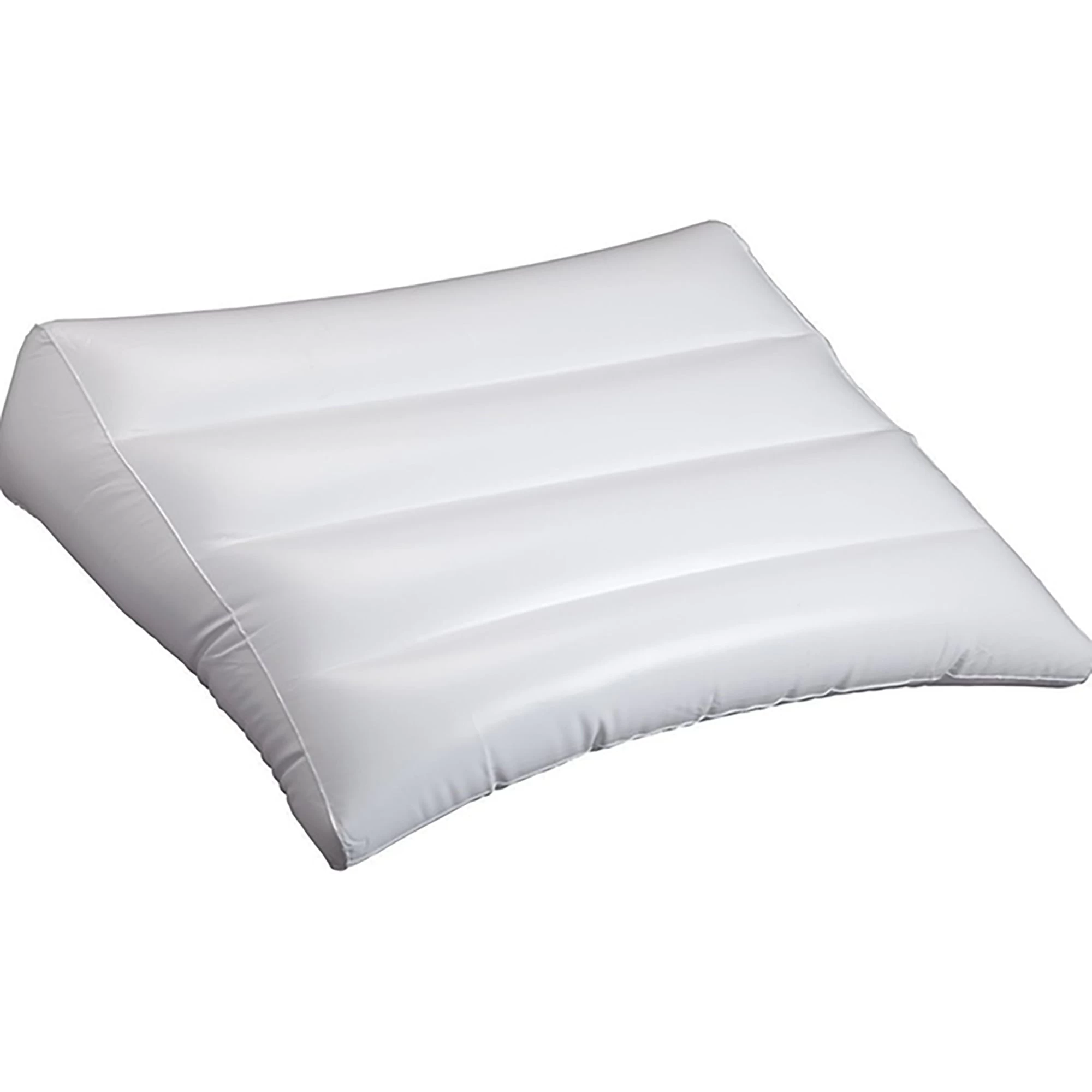 The Inflatable Wedge when blown up measures approximately : 26″W x 24″L – slopes from 8 1/2″H to 4″ (please note product insert states 27″ x 27″ but wedge actually inflates to approx 26″ x 24″)