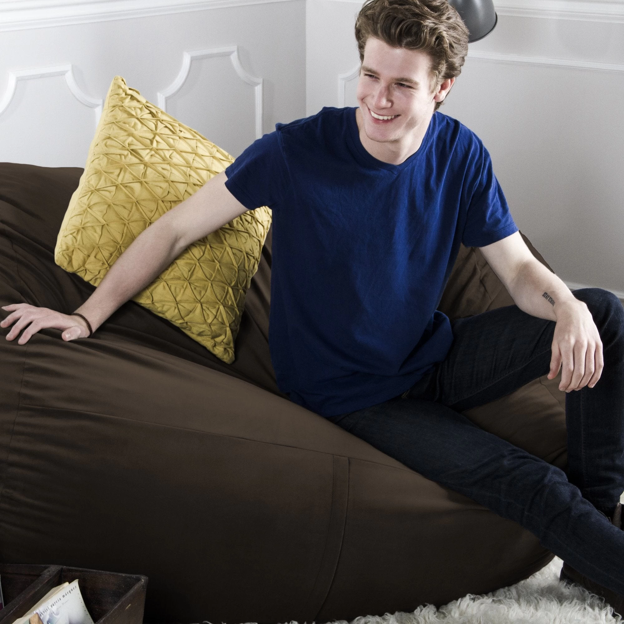 The Jaxx 5.5 ft Bean Bag Lounger is the cure for the common loveseat. It makes a statement as the centerpiece to a room or nestled into a corner. Not to mention it is heaven to lie back and relax on, with extra space in case you need room for two. Filled with finely shredded polyurethane foam and covered in soft yet durable Microsuede, this stylish bean bag conforms to your body in a variety of position. Available in a variety of colors, our Microsuede covers are both removable and machine-washable. Each bean bag includes a protective inner-liner with childproof zipper that keeps the filling out of reach when cleaning the cover. To clean the cover, wash with cold water and tumble dry on low heat. Fluff as needed.