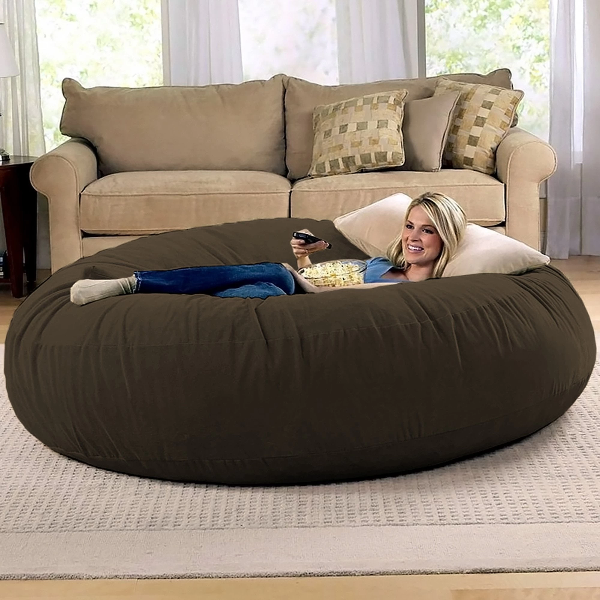 The Jaxx 6 ft Cocoon is as functional as it is stylish. It makes a statement as the centerpiece to a room or nestled into a corner. Not to mention it is heaven to lie back and relax on, with extra space in case you need room for two. When you flip it onto its side, the Cocoon transforms into a retro bean bag with plenty of back support and cushiony foam to sink into. Available in a variety of colors, our Microsuede covers are both removable and machine-washable. Each bean bag includes a protective inner-liner with childproof zipper that keeps the filling out of reach when cleaning the cover. To clean the cover, wash with cold water and tumble dry on low heat.