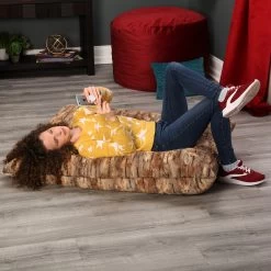 Our most popular bag, The pillow saxx is for those looking for variety in their lounging options. And now, it’s even better and softer with the Premium Luxe Faux Fur cover. Like having one gigantic pillow, It molds around you to suit your style. In the 3. 5′ Size, it works as a room floor pillow when flat with plenty of room to relax and up against the wall It provides the perfect position for reading. Plus, it is easy to store under a bed or table when not in use-not that you will ever want to leave this platform of peacefulness. We stuff our saxx with shredded foam micro-cushions and cover it in the finest, most breathable materials. When it gets dirty just throw the cover in the wash and it’s good as new. Care instructions for luxe fur cover: Machine wash with cold water and tumble dry on low heat. Fluff as needed.