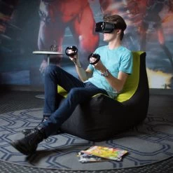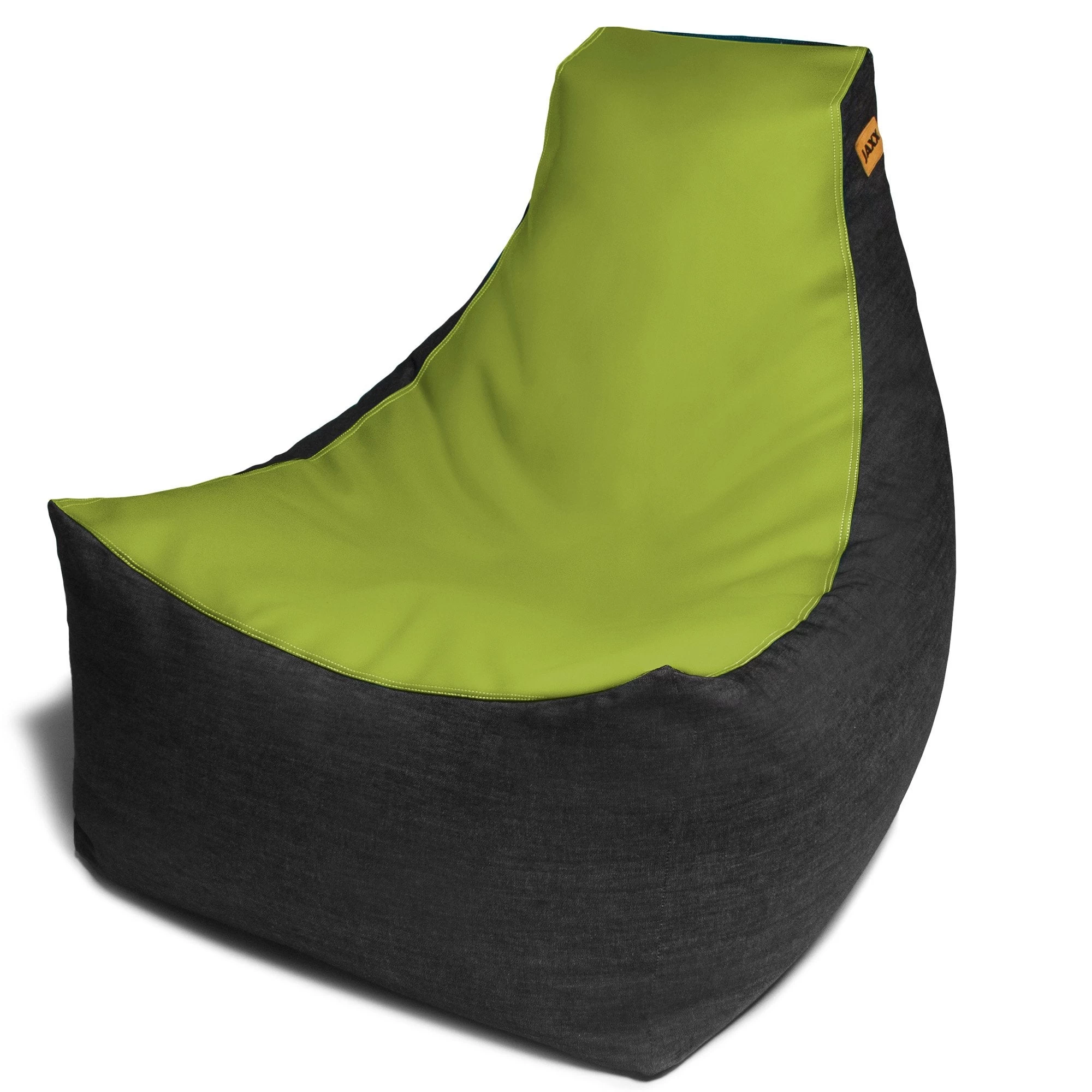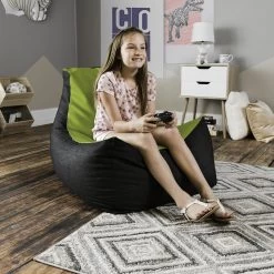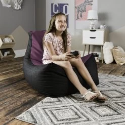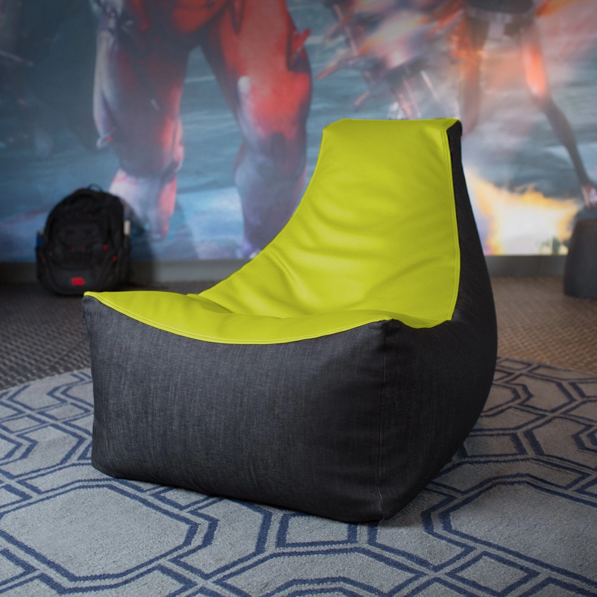 - Modern vinyl and denim bean bag chair perfect for gaming