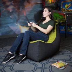 Play in style with the supportive Pixel Gamer Bean Bag. This modern chair provides enough comfort for spending the whole day gaming while keeping you in the center of all the action. Low to the ground and lightweight, with a handle for convenient transport, the Pixel Gamer Bean Bag can be placed in front of a television or monitor and quickly moved away when not needed. Because the Pixel is so good looking, you will want to show it off all the time. The top and back are soft vinyl, which is not only richly colored but durable enough to withstand daily use. The sides are black denim, and the chair features white contrast threading throughout. The EPS filling inside the Pixel arranges itself to conform to your body, while the seat is large enough to stay relaxed while taking on the big boss.