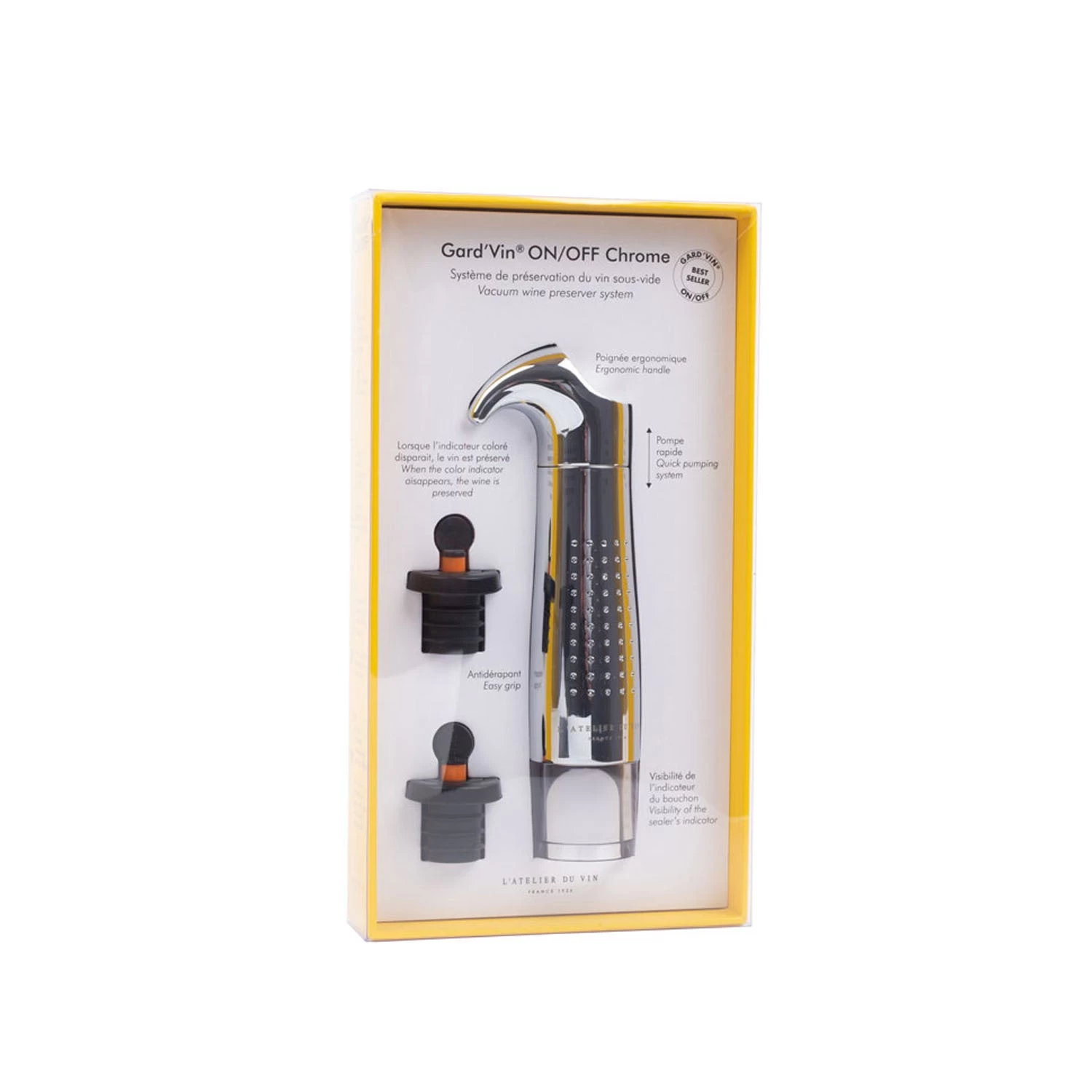 Metal Gard’Vin® vacuum wine preserver system in silver-tone.Â