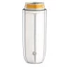 At the bottom, a chrome champagne cork opener, with a surprisingly original opening mechanism. Simply position the jaw around the cork and rotate the handle, while gently applying pressure with the thumb or index finger. The cork comes free with disconcerting ease, without popping off, and remains inside the opener. This oenological curiosity is the safest and most practical way to open champagne bottles without losing a single drop.