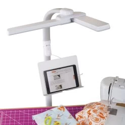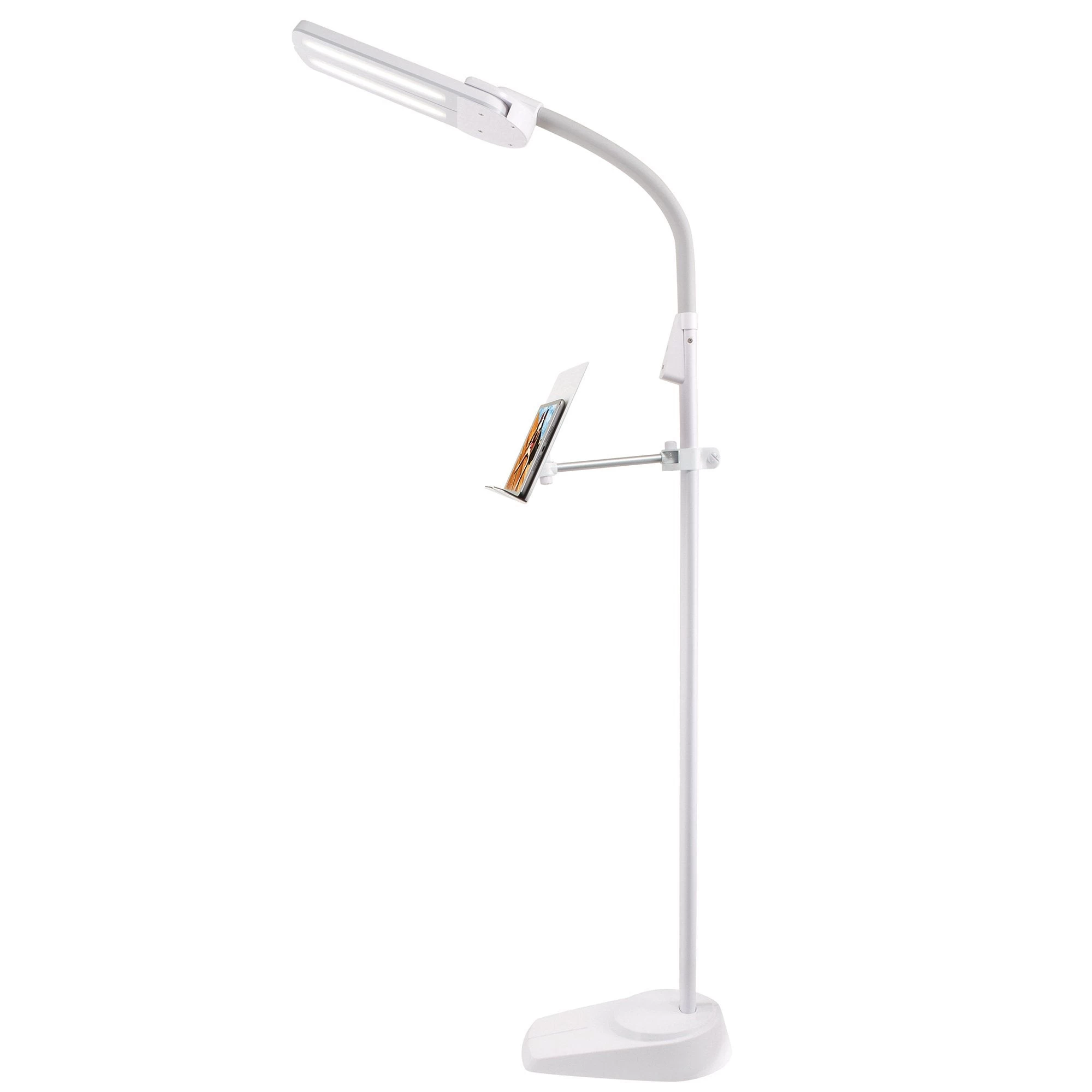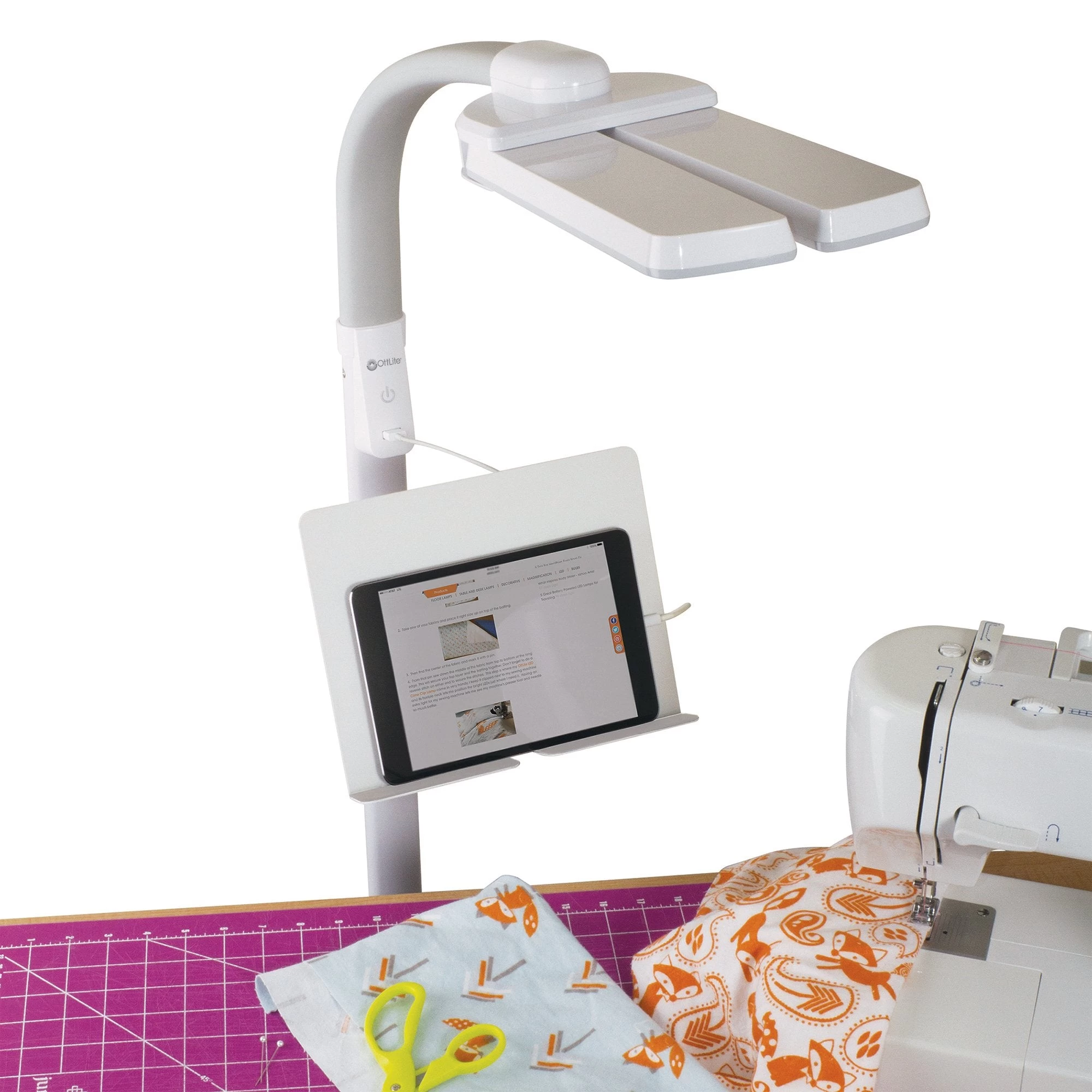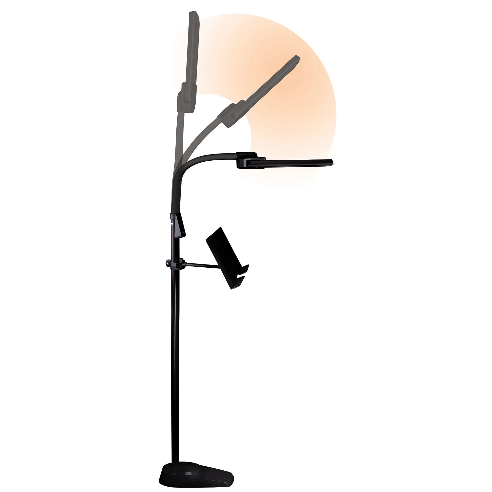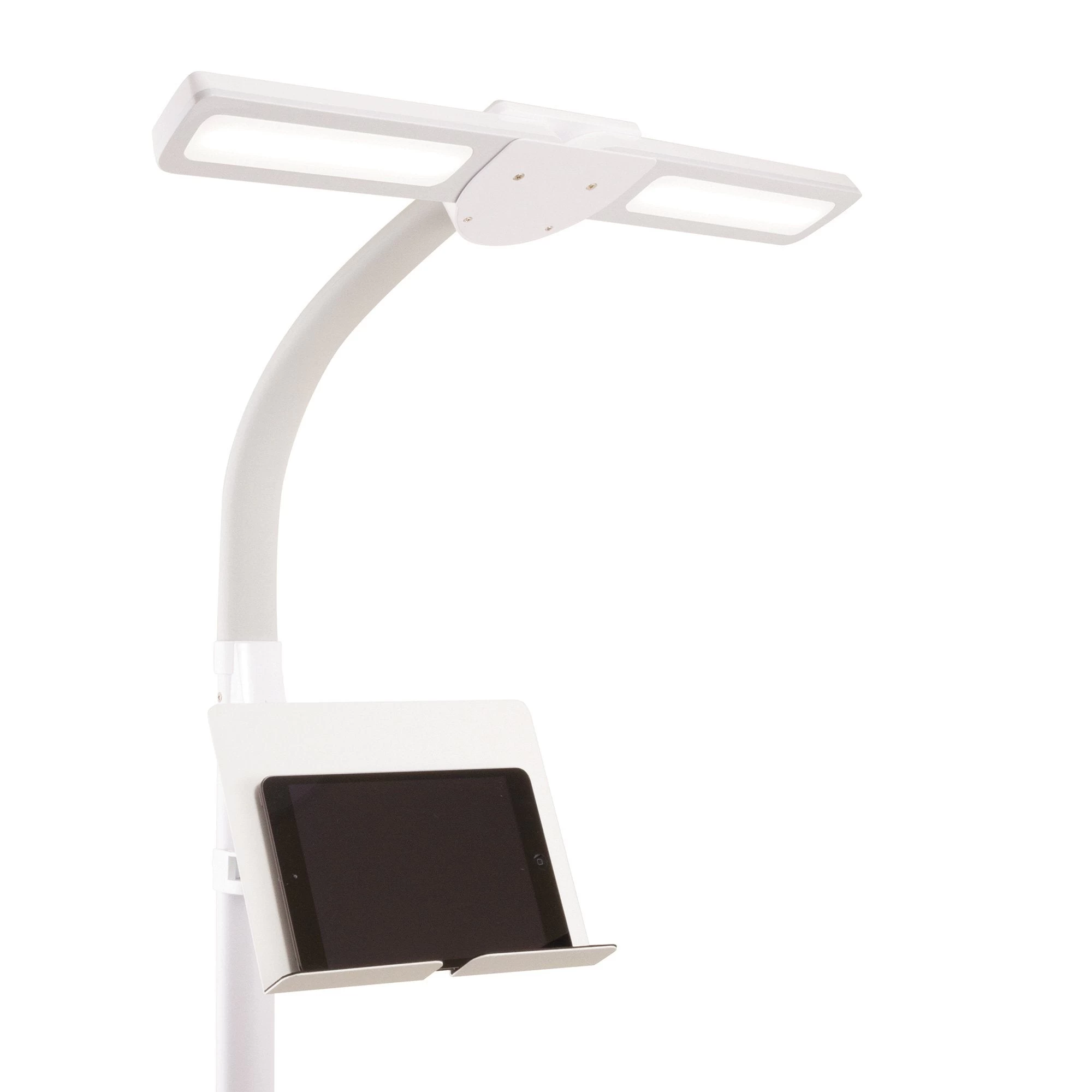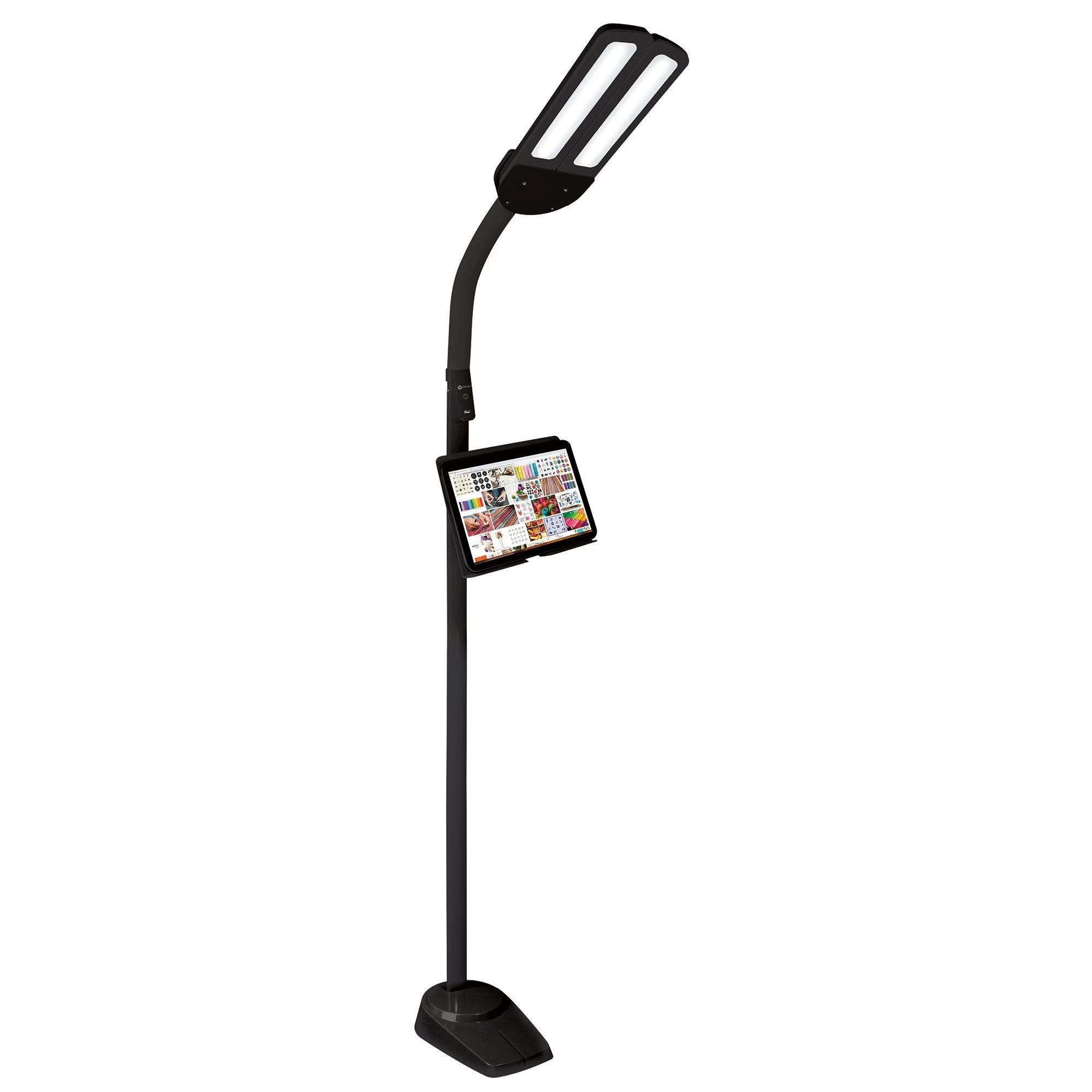 The OttLite Dual Shade LED Floor Lamp with USB Charging Station is the perfect reading and crafting lamp with a dual head design that pivots to 180 degrees (or anything in between). Easily change the three brightness levels to meet your workspace illumination needs. Adjustable and convenient, the stand helps securely holds your tablet or smartphone so you can have quick access to websites, social media, projects and instructions. You’ll also be sure to stay fully connected and charged with the convenient 5V, 2.1A USB port. With OttLite Natural Daylight LED Illumination, you can see details clearly and reduce glare and eyestrain so you can do what you love, longer.