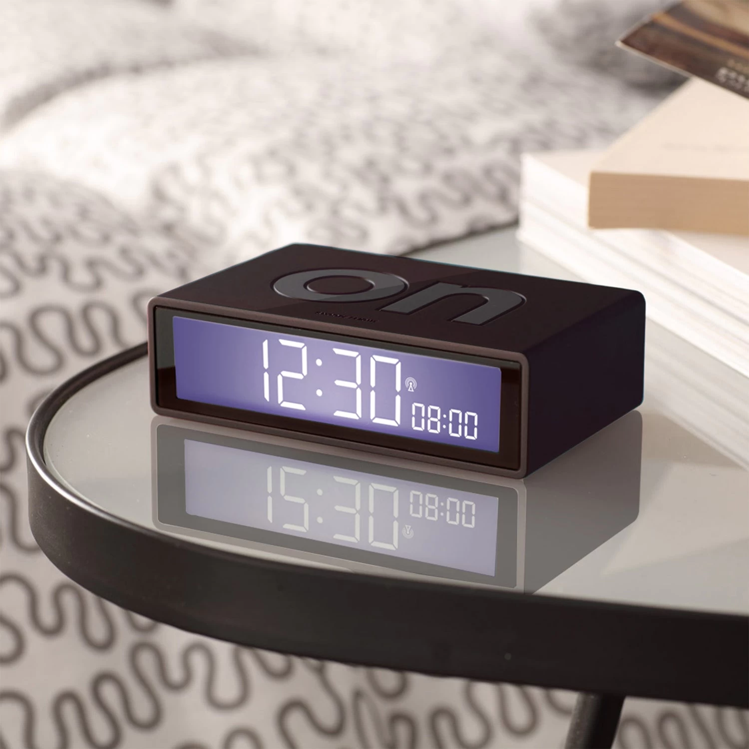- Reversible LCD display alarm clock.