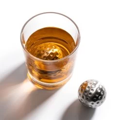 Luxurious Bar Gift Set – Golf Whiskey Glasses – Golf Chillers – Tong – Set in Premium Wood Box by The Wine Savant