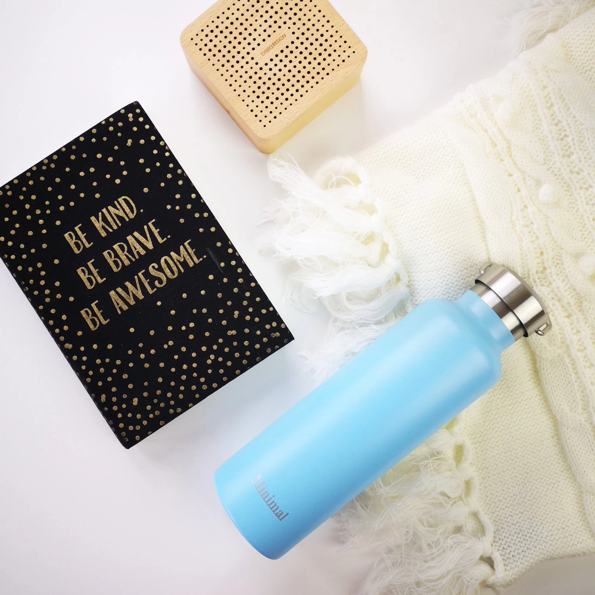 Minimal Insulated Flasks are reusable stainless steel water containers with slim, compact and lightweight design. All of our products guarantee BPA, phthalates free and food graded components, making it one of the safest portable & personal water containers in the market. Double wall vacuum, copper plated inner wall and high efficient leak proof screw cap make sure the contained beverages/foods are kept fresh for up to 24 hours. Minimal’s endless attention to design, choice of materials, production method and manufacturing processes guarantee environmentally friendly products that fulfill users satisfactions.