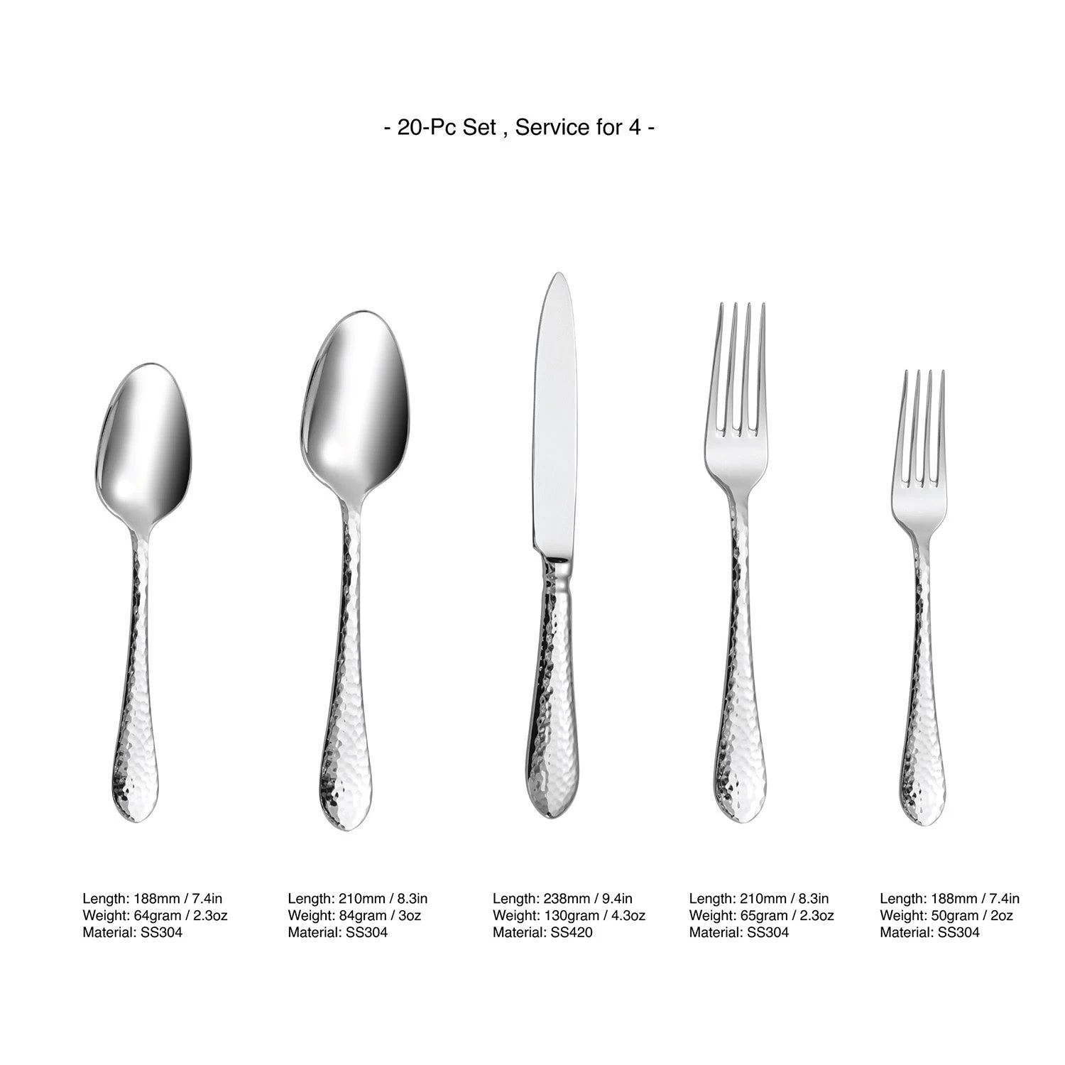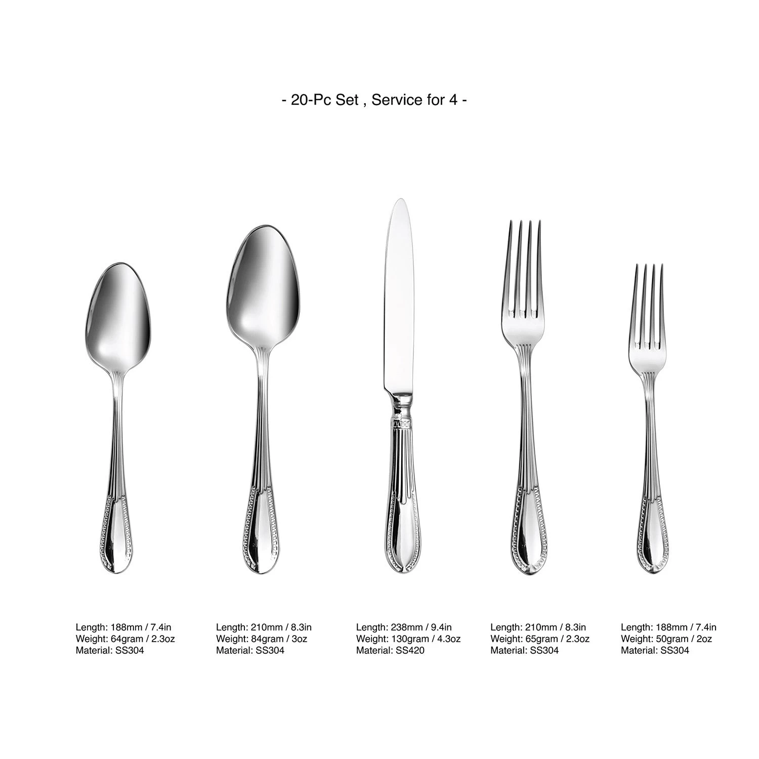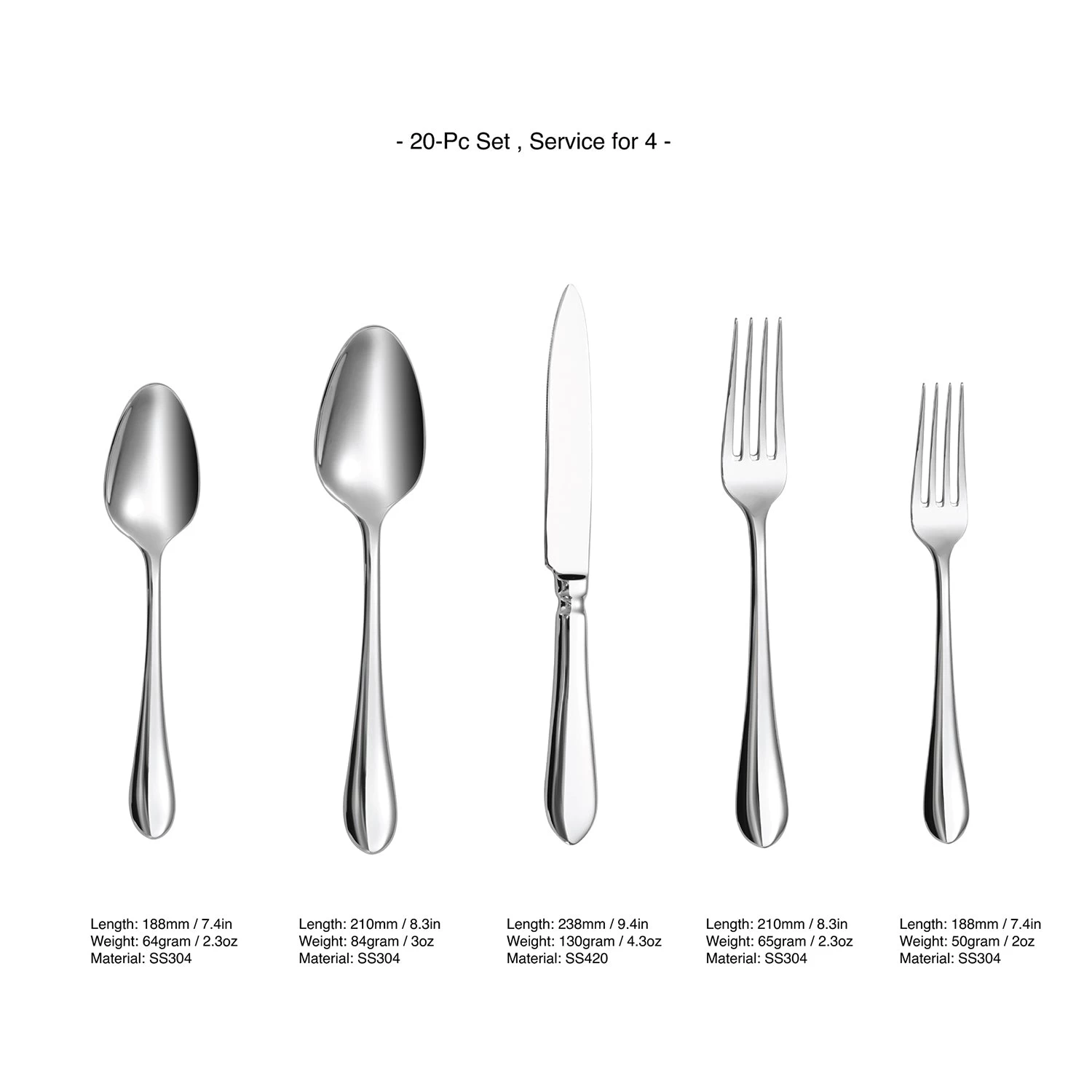 Minimal Stainless Steel Flatware Set of 20, Serves 4