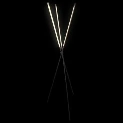 With a minimalist design and architectural charm, this LED tripod floor lamp accomplishes a tribute to simple style. Made of silver finish metal with metal shades, it delivers versatility and a touch of industrial attitude. This energy-efficient floor lamp operates from a foot-based dimmer switch.