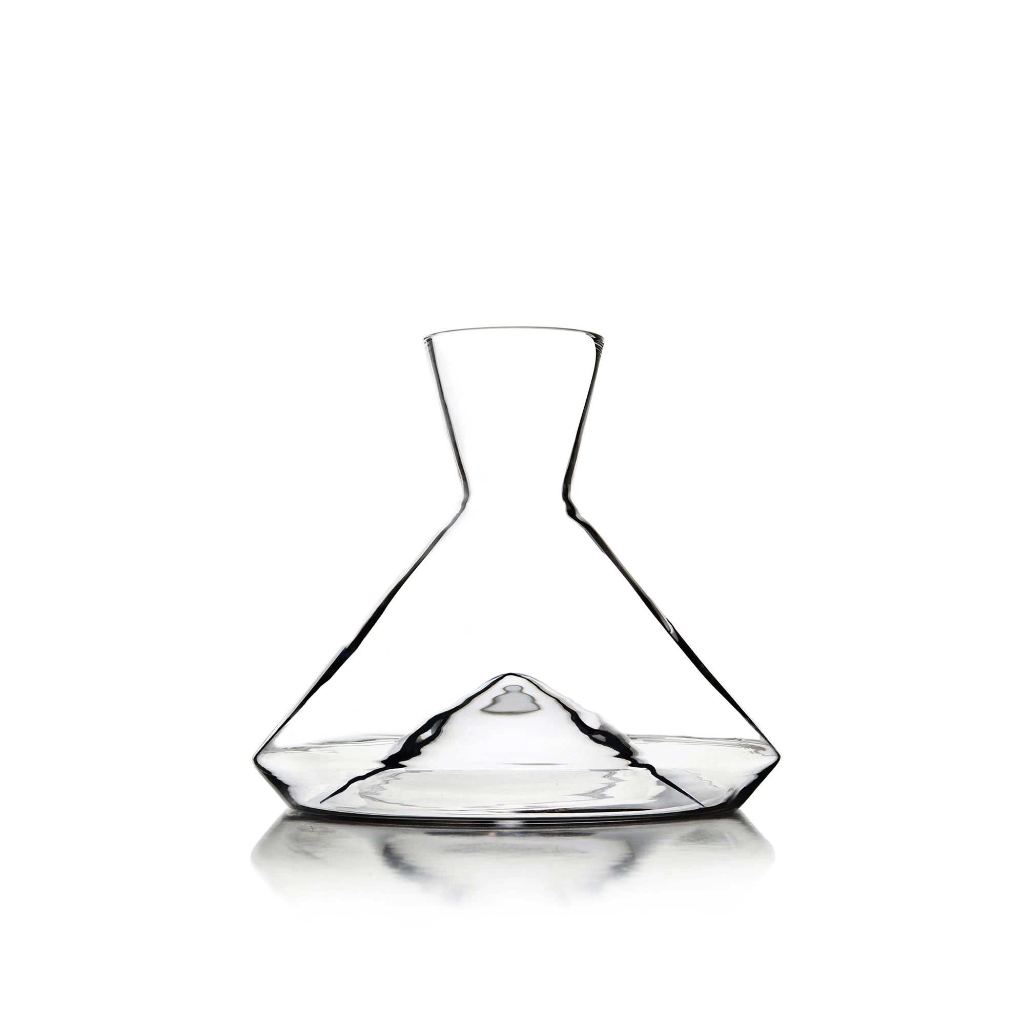 When wine is decanted, the oxygen exposure allows the flavors to develop in seconds, not years, so you get a brighter bouquet and clearer tasting notes. While pouring, the wine falls on top of the peak and aerates in a beautiful cascade down the mountain. Holding a standard 750ml bottle of wine, the decanter and its glass center peak, showcases the inspiration of the Italian Alps.