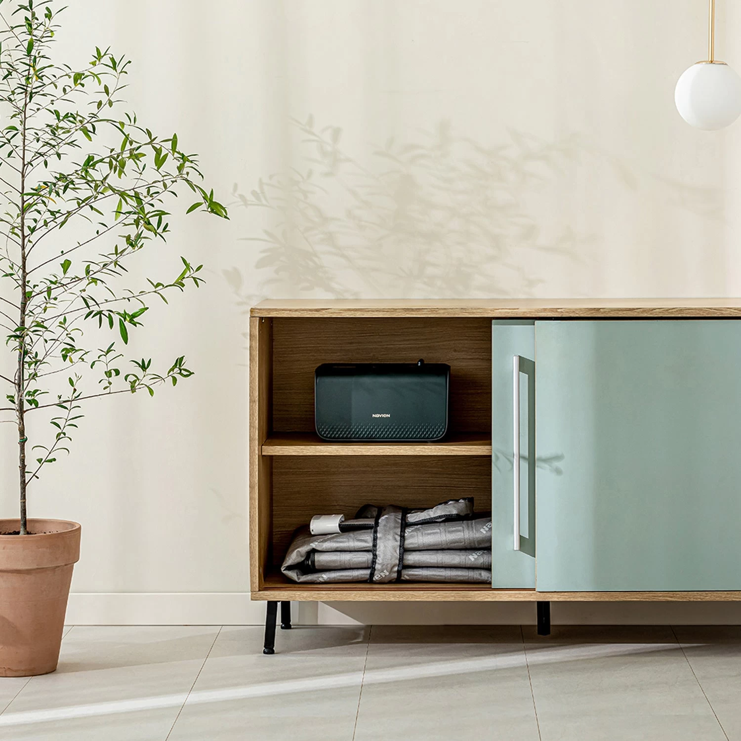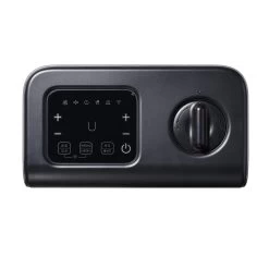 Use the remote or WiFi control from your phone. Features fast heating, sleep mode, child lock, and voice guidance.