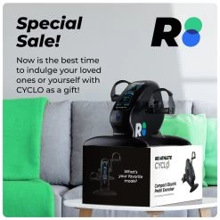 STAYING HEALTHY MADE EASIER. There are many health benefits of regularly using stationary bikes. For seniors and younger people alike, cycling on a foot pedal exerciser helps make muscles and joints stronger and improves blood circulation. CYCLO is also a pedal exerciser for seniors who look for desk exercise equipment as a physical activity booster or an instrument of post-illness rehabilitation. Using a leg exerciser while sitting helps one stay healthy without overstraining the body.