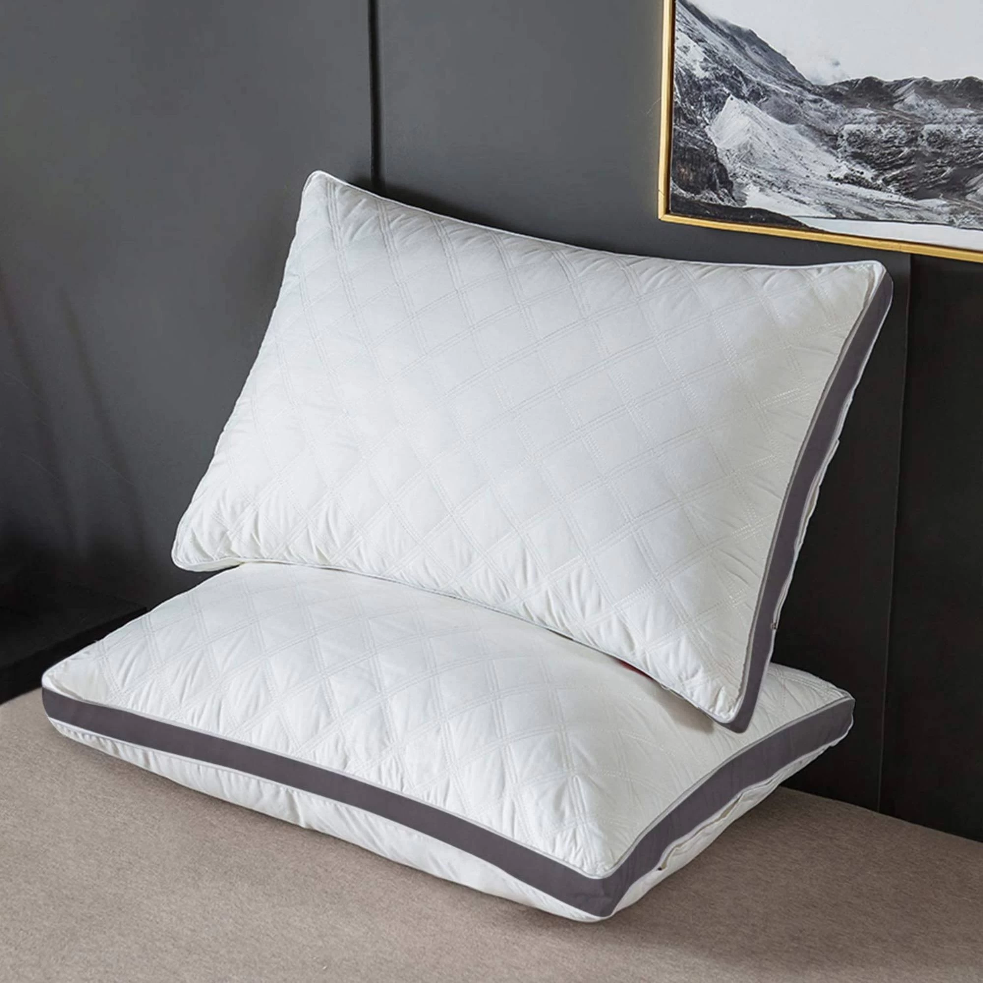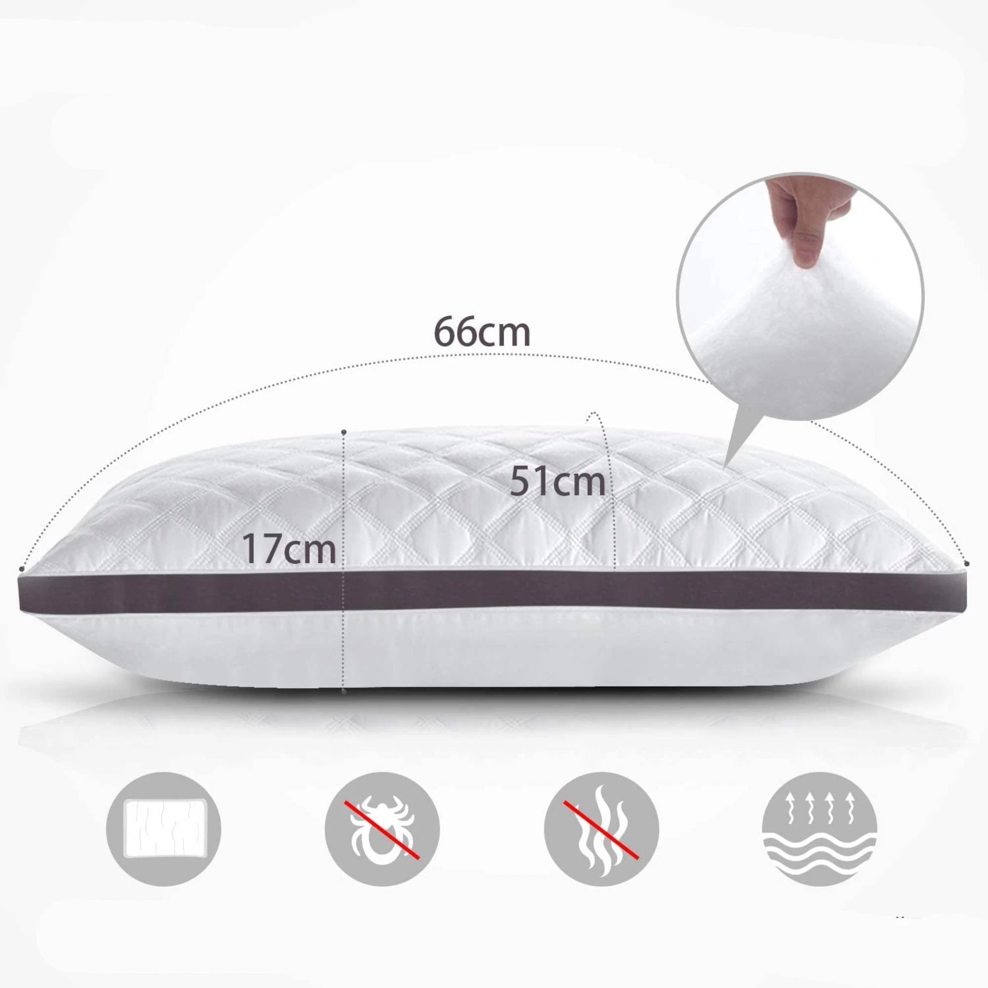 Rest your head on these high-quality pillows knowing you can go to sleep in pure comfort and relaxation. The filling of the pillow is made from poly gel-filled fiber to ensure maximum comfort for all sleeping position.