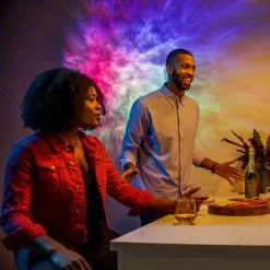 Sky Lite 2.0 instantly projects a field of drifting green stars against a transforming RGB nebula cloud (Patent Protected). Sky Lite incorporates a direct diode Laser, precision glass optics and holographic technologies to create an otherworldly visual experience. Download the app and connect with Bluetooth or use simple button controls that make it easy to cycle through light effects, adjust brightness, or start/stop the rotating motion. Includes 3ft AC wall adapter.