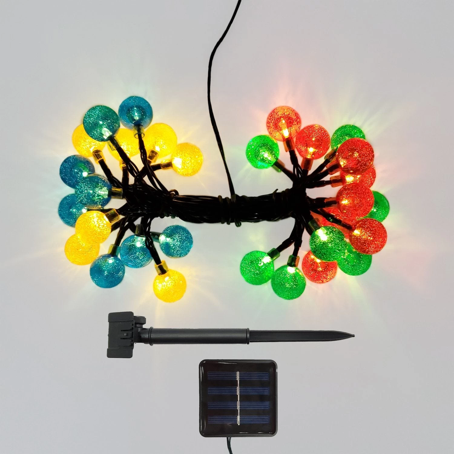 Charged by the sun, multifunction solar powered LED string lights with crystal balls are the perfect accent lighting for your outdoor décor. With eight different light functions, multifunction solar powered string lights will create the perfect ambient lighting for your patio, porch, deck, roof top and garden.
