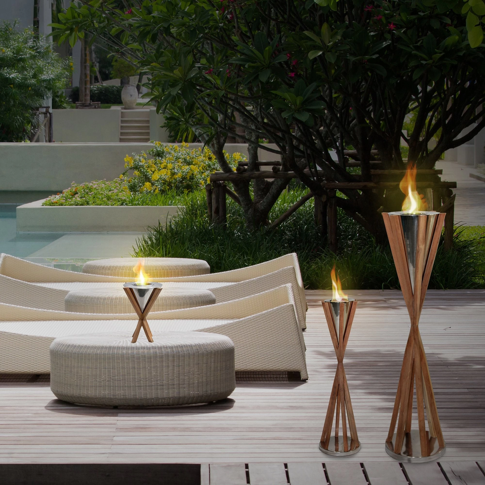 The exciting Anywhere Fireplace Southampton series GEL FUEL fireplaces combines the popular and appealing teak wood with premium polished stainless steel. The striking design of these fireplaces will make a dramatic statement whether you choose to place them indoors, but especially outdoors. Just imagine them on your patio, by a pool, in your yard, on dock, deck or at your beach house.