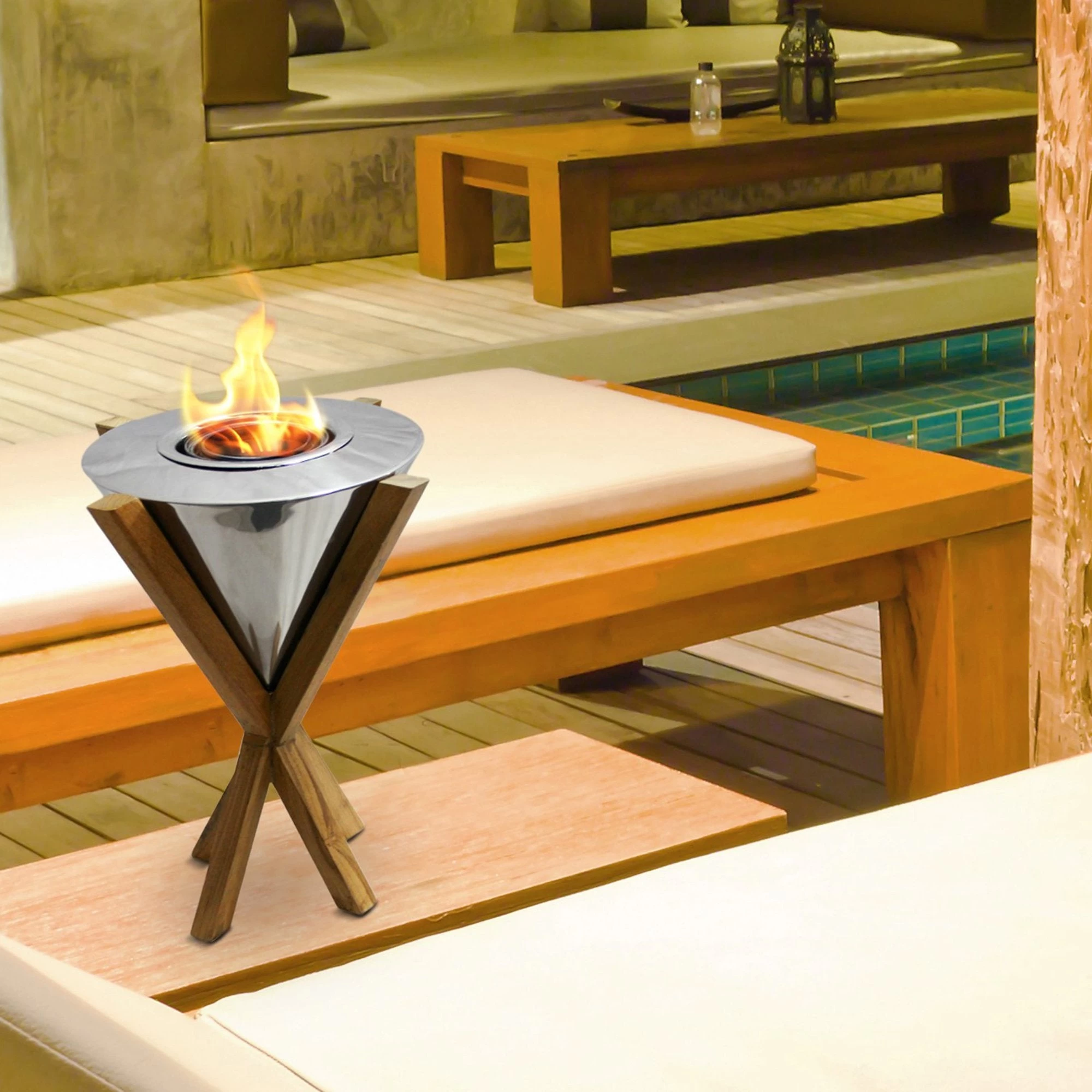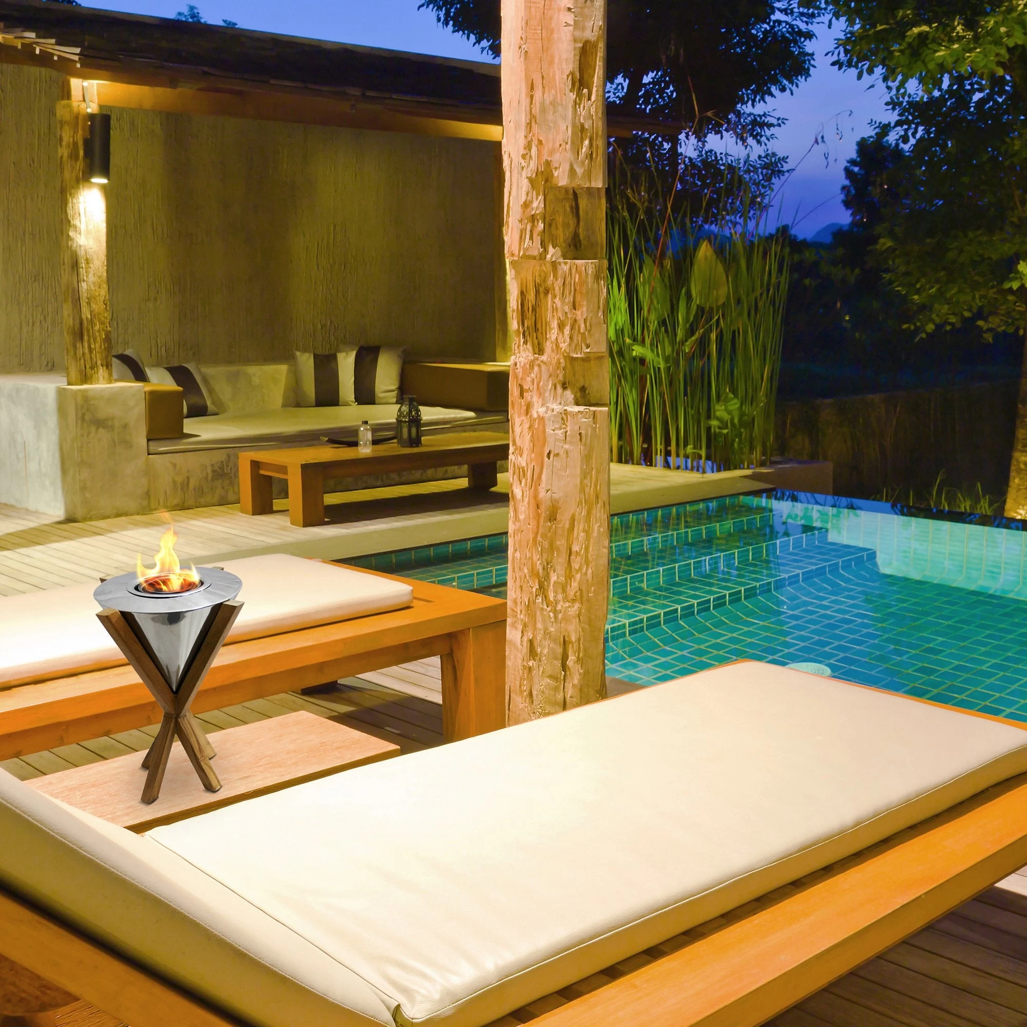 Anywhere Fireplaceâ„¢ Southampton series GEL fuel fireplaces combines the popular and appealing reclaimed wood with premium polished stainless steel. The striking design of these fireplaces will make a dramatic statement whether you choose to place them indoors, but especially outdoors. Just imagine them on your patio, by a pool, in your yard, on dock, deck or at your beach house.