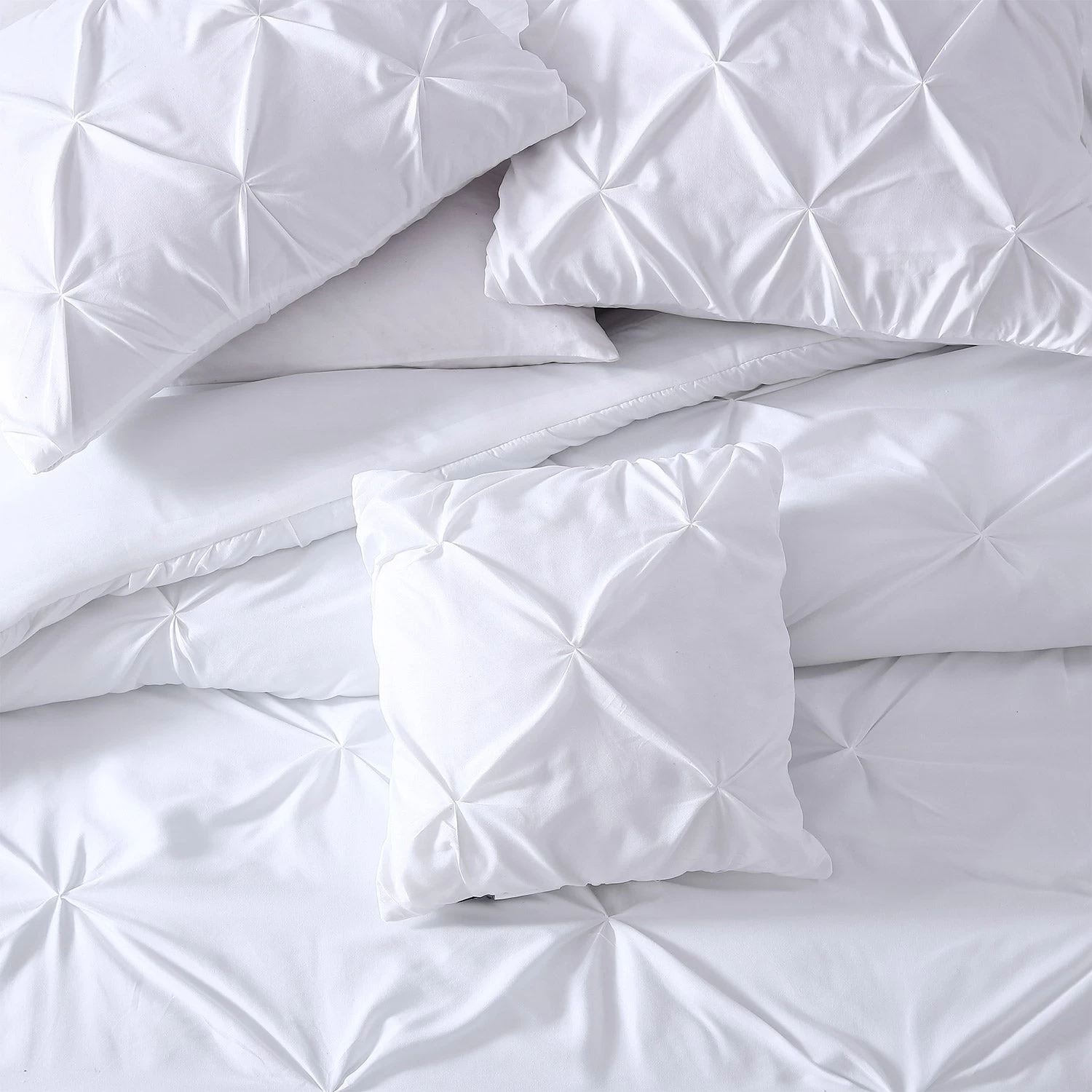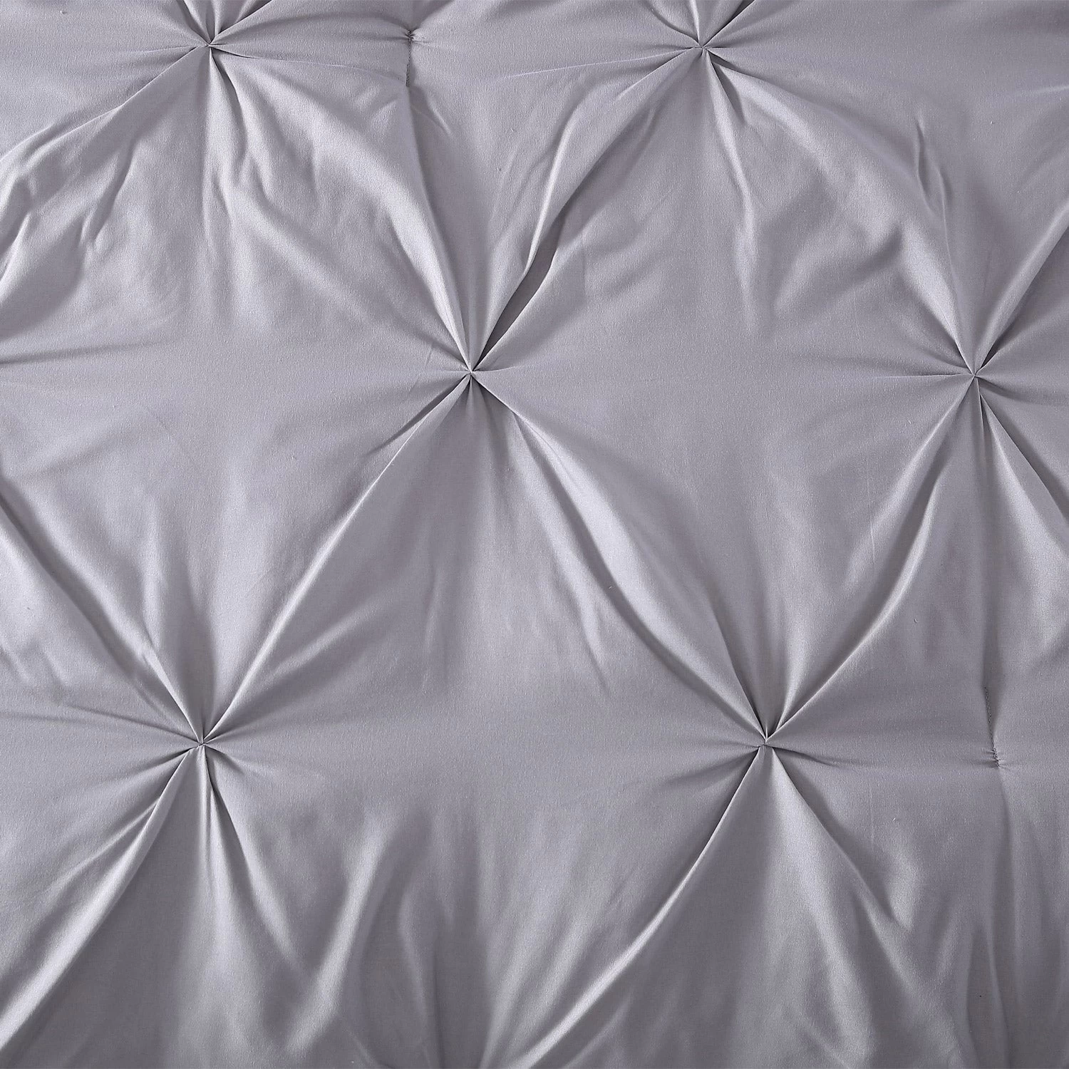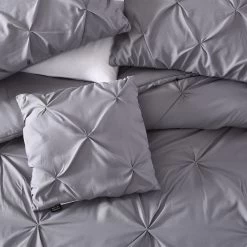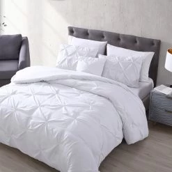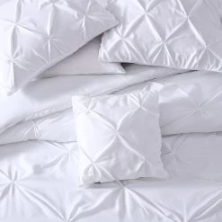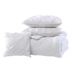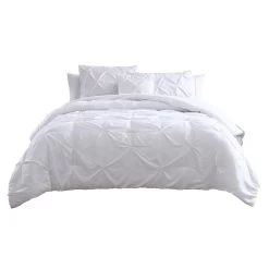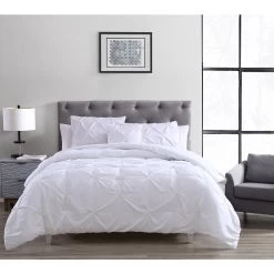 The Nesting Company Spruce 4 Piece Comforter set features a pinch pleated design. Its look is achieved by individually sewing pin-tuck across the comforter. The look is both classic and chic, it will elevate the look of both contemporary and traditional bedrooms. Made from super soft Microfiber, perfect for year round use. This set is machine washable for easy care.