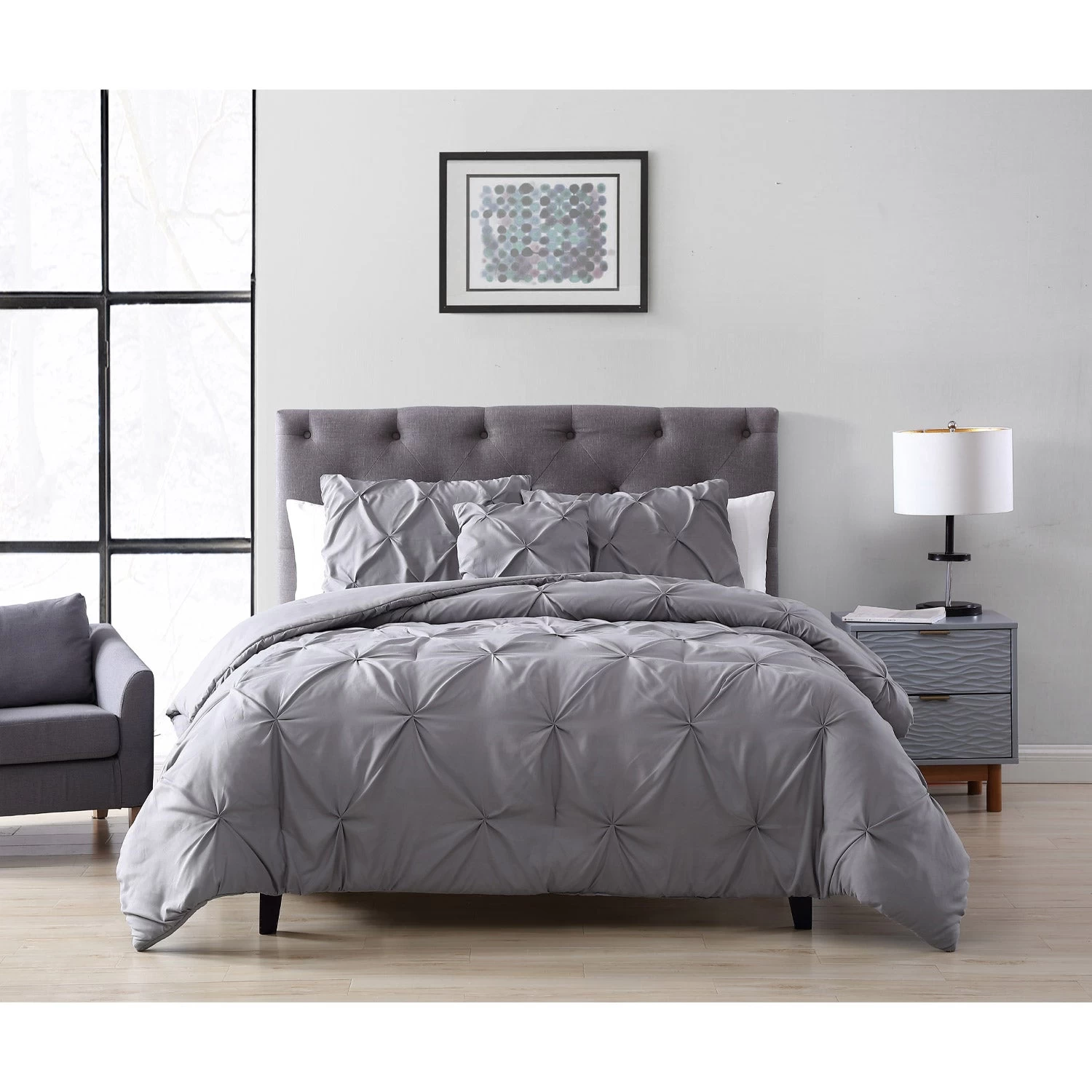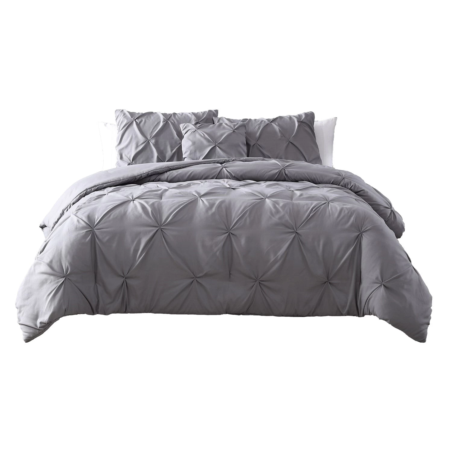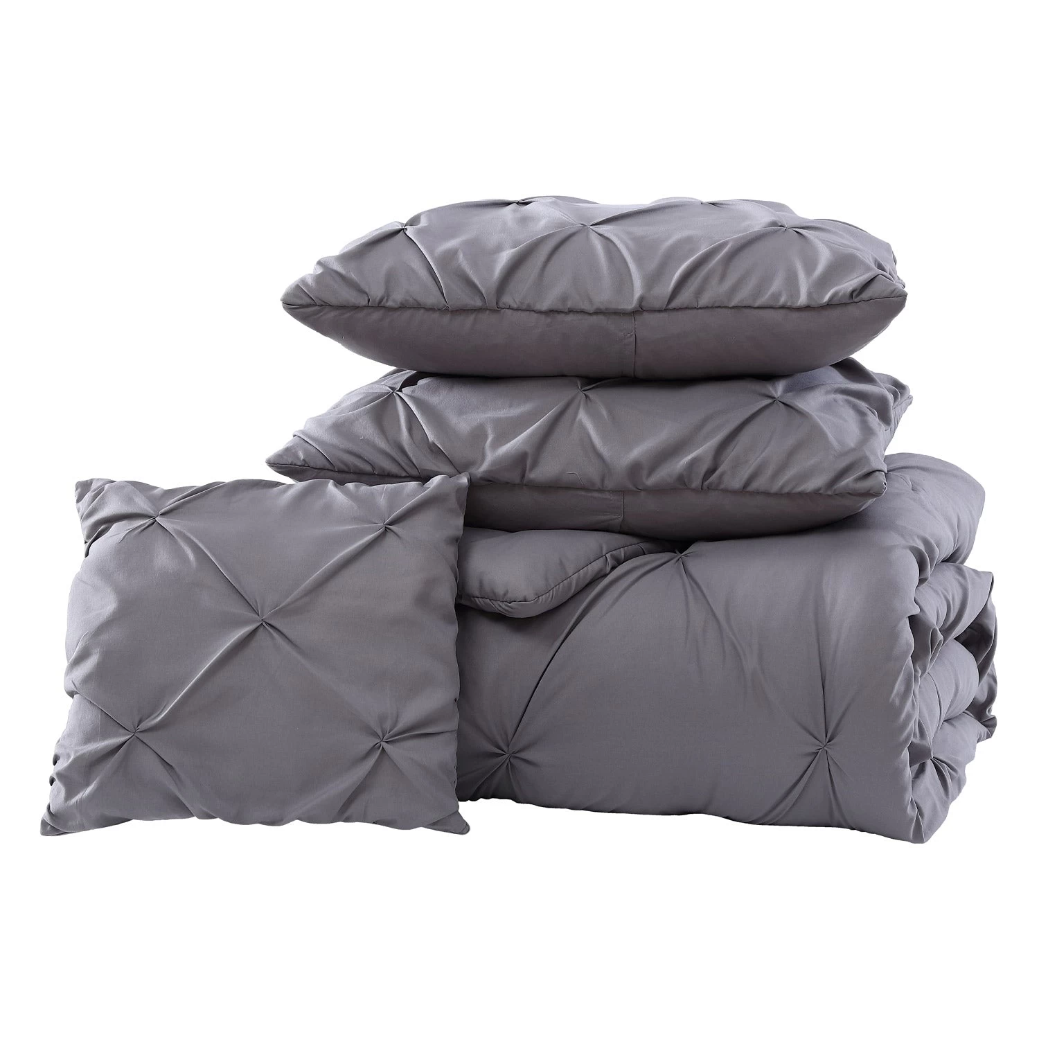 The Nesting Company Spruce 4 Piece Comforter set features a pinch pleated design. Its look is achieved by individually sewing pin-tuck across the comforter. The look is both classic and chic, it will elevate the look of both contemporary and traditional bedrooms. Made from super soft Microfiber, perfect for year round use. This set is machine washable for easy care.
